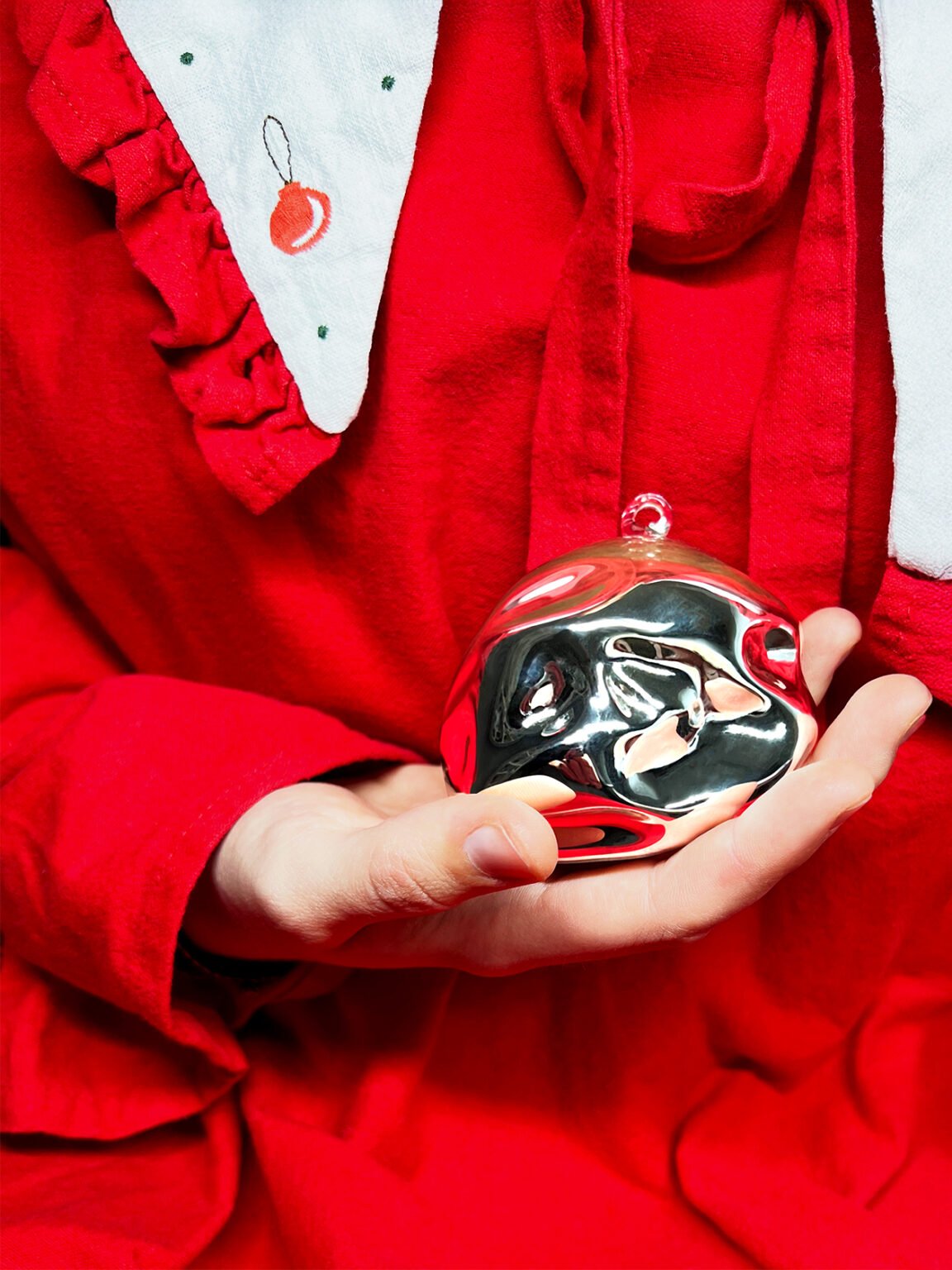Здесь ёлочная игрушка становится своеобразным зеркалом, отражающим внутренние и внешние изменения. За отправную точку взят шар — идеальная форма, будто существующая в вакууме. Но, поддавшись воздействию внешних сил, она меняется, обретая непредсказуемые изгибы. Так и человек: при рождении «чистый лист» со временем трансформируется и совершенствуется, впитывая последствия событий, решений и встреч.