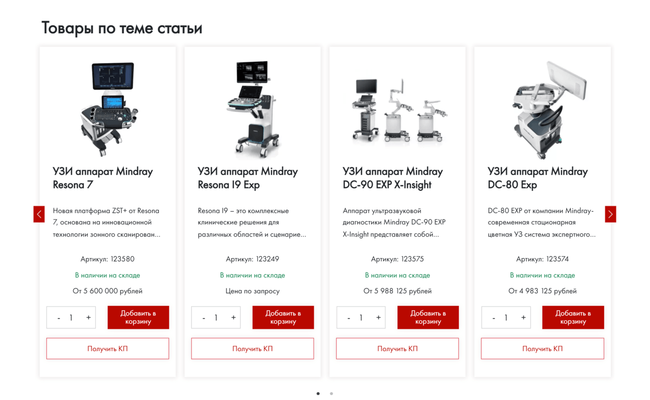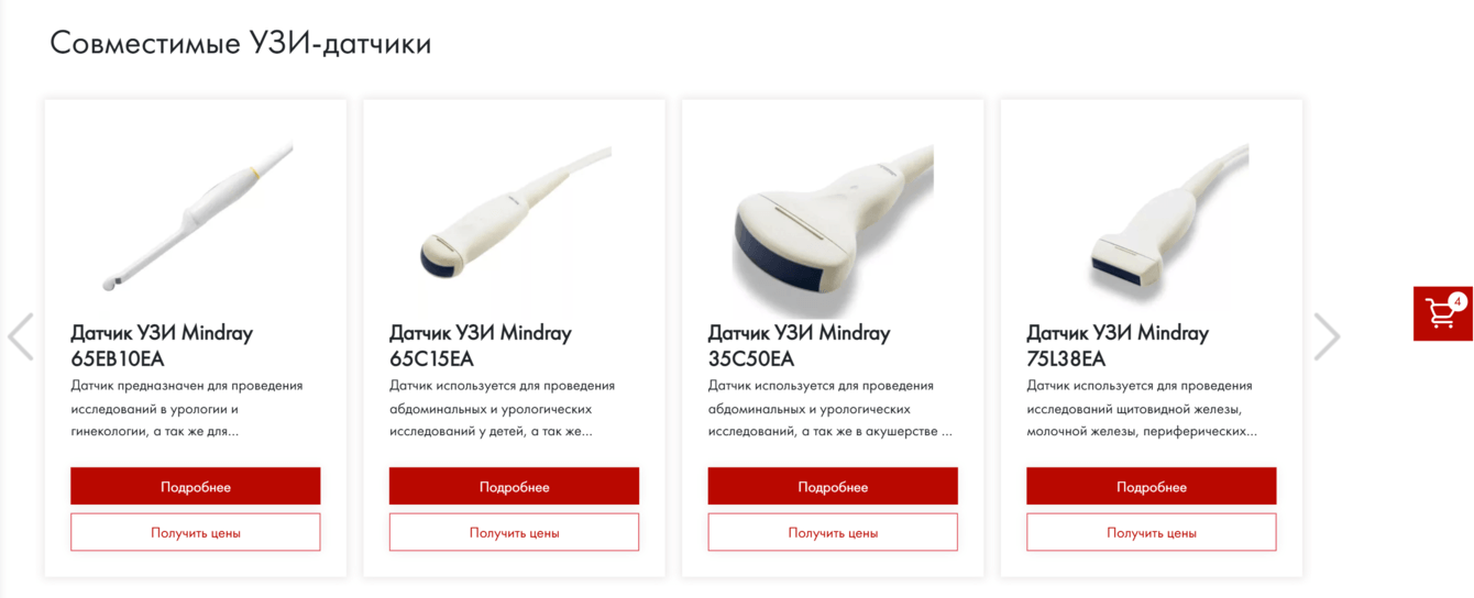- Для УЗИ-аппаратов добавили блок с сопутствующими товарами — УЗИ-датчиками.