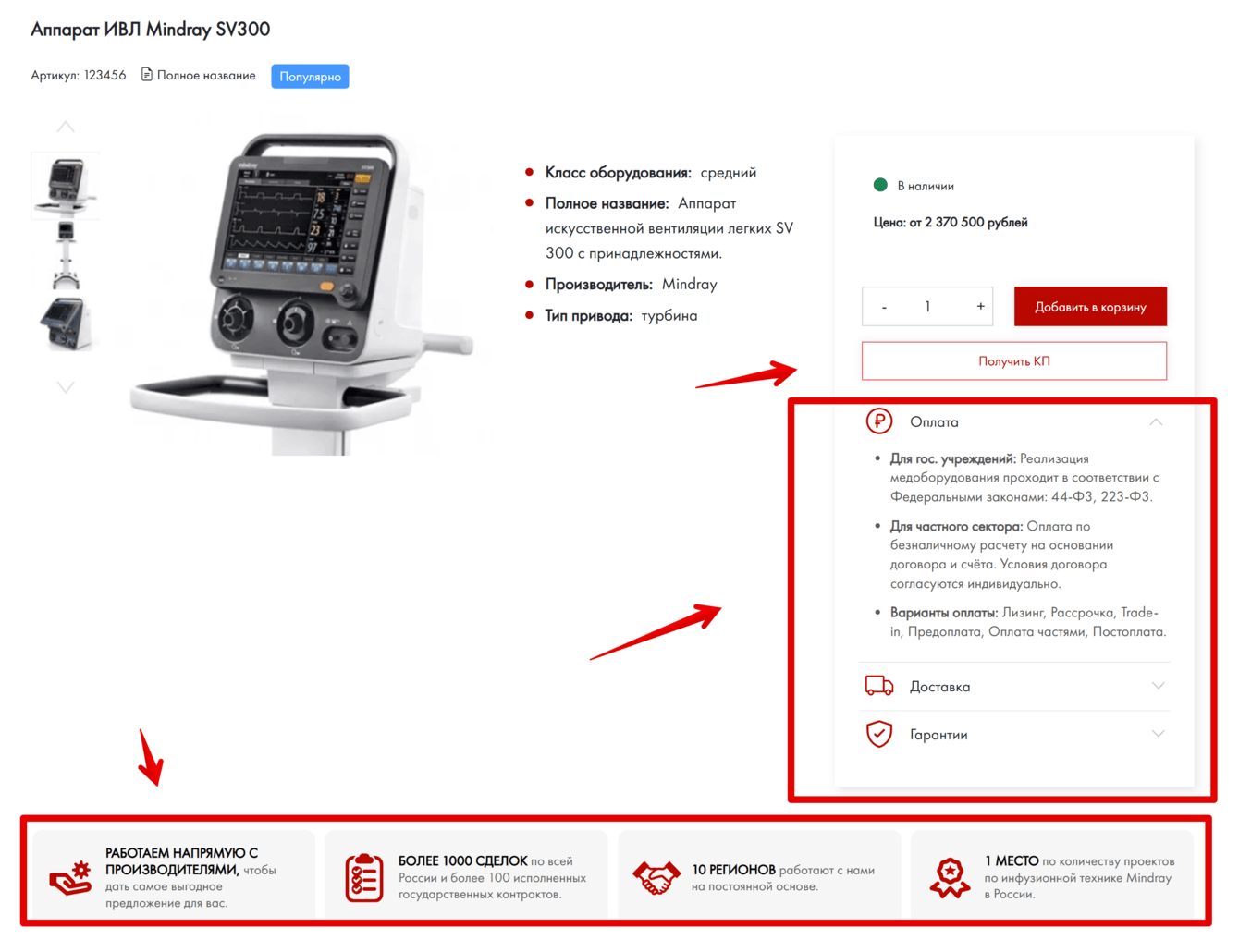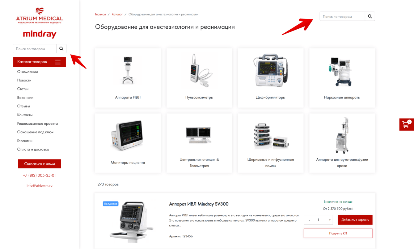 1. Проверили, какое оборудование клиенты ищут в поиске, что предлагают конкуренты и официальные сайты производителей. Особое внимание уделили приоритетному оборудованию, в том числе от производителя Mindray.