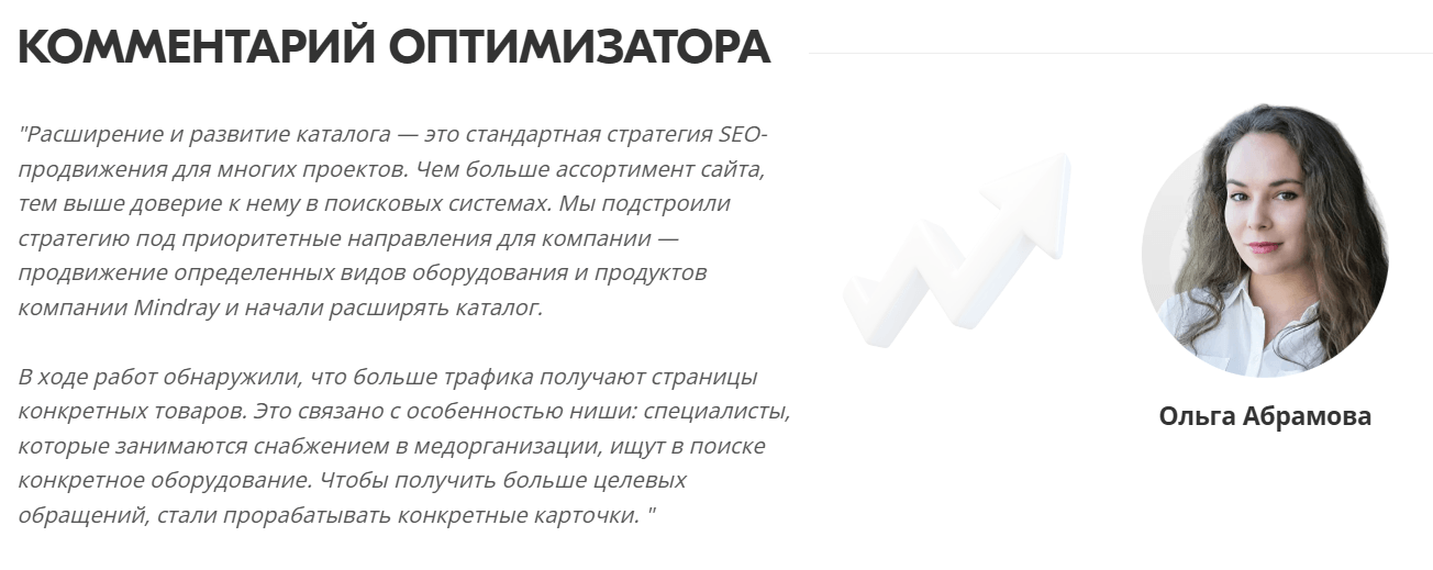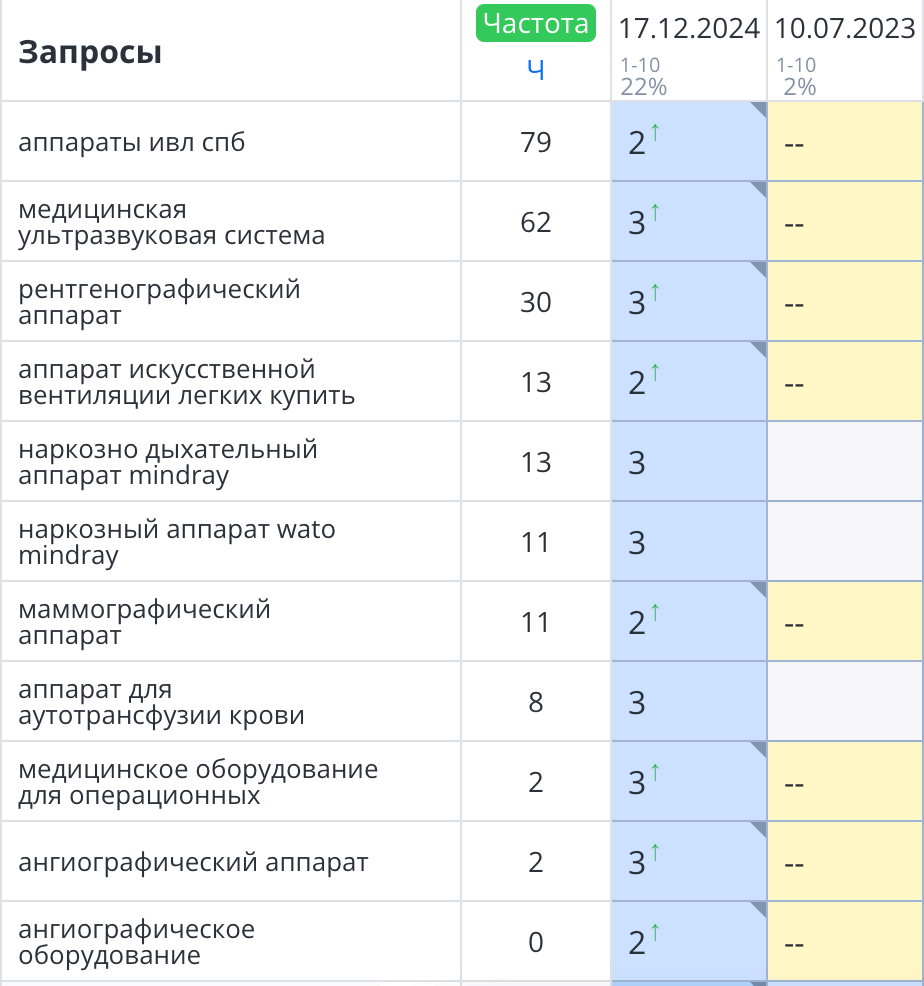 В нише медицинского оборудования высокая конкуренция: сайтам поставщиков приходится бороться за трафик друг с другом, с производителями, а иногда даже с маркетплейсами. В гонке побеждают сайты с широкими и проработанными каталогами, подробными карточками товаров.
