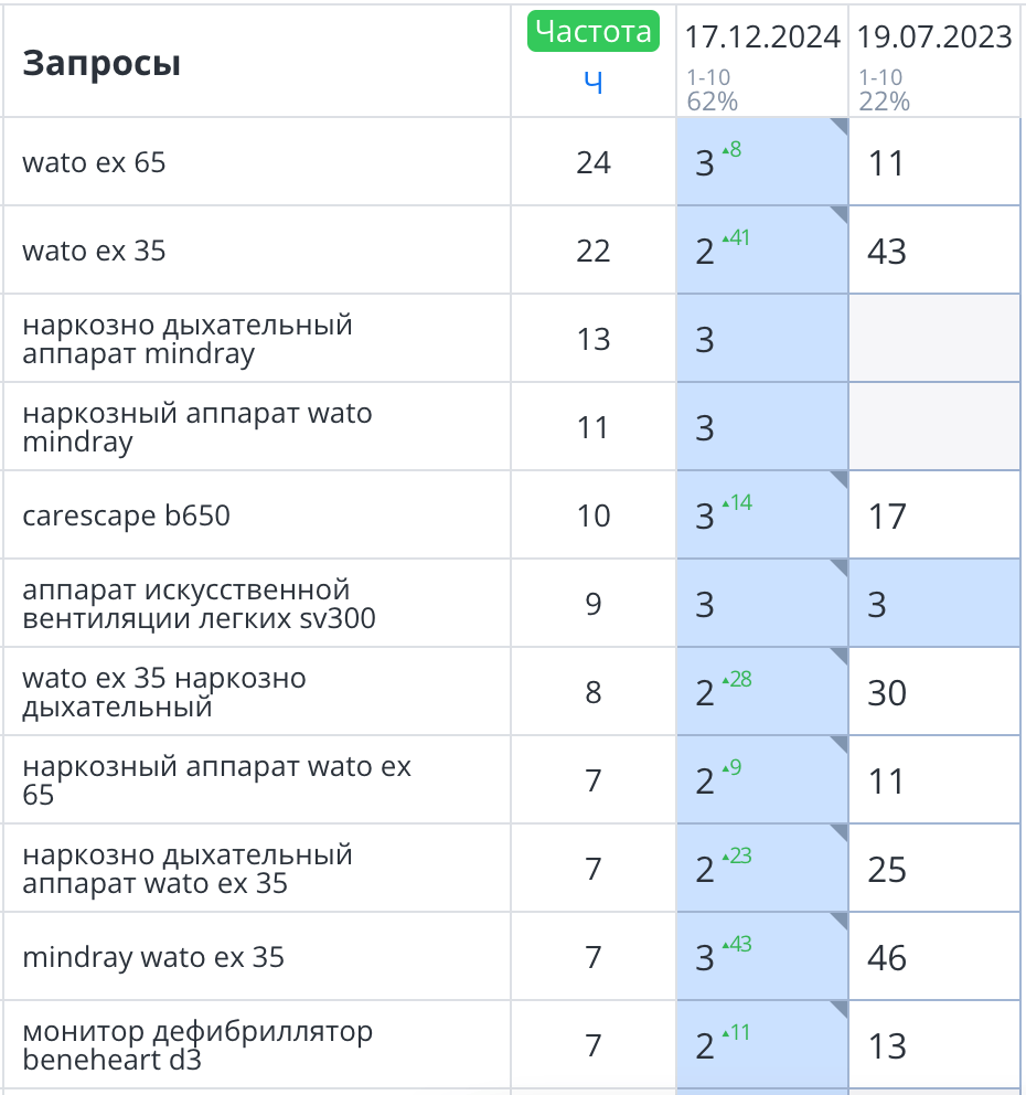 Основная цель SEO-продвижения сайта — увеличить продажи с сайта и усилить узнаваемость бренда. В приоритете — продвижение медицинского оборудования для анестезиологии, реанимации и хирургии, а также продуктов компании Mindray.
