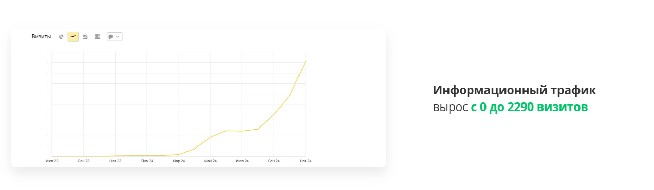 Информационный трафик — это способ раскачать сайт: его проще привлечь, чем коммерческий, а поток посетителей улучшит поведенческие факторы на сайте. Кроме того, целевой аудитории компании часто требуется дополнительная информация об оборудовании или помощь с выбором. Раньше компания сама готовила тексты, но без нужной оптимизации статьи не приносили трафика.
