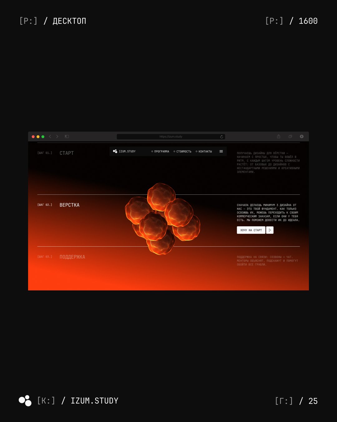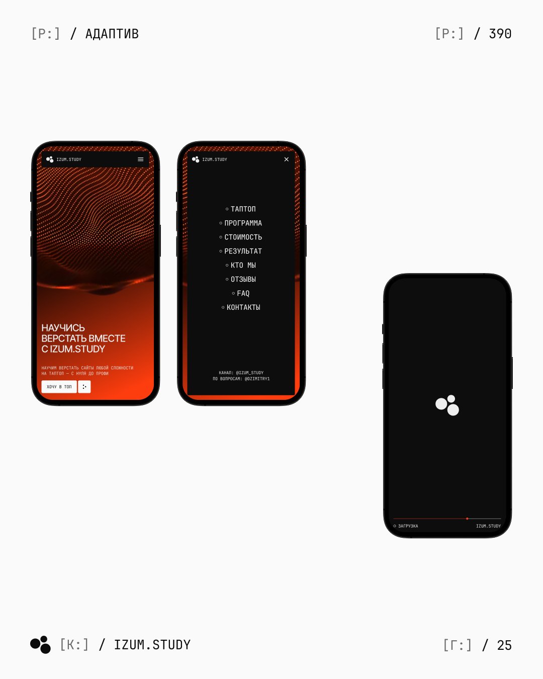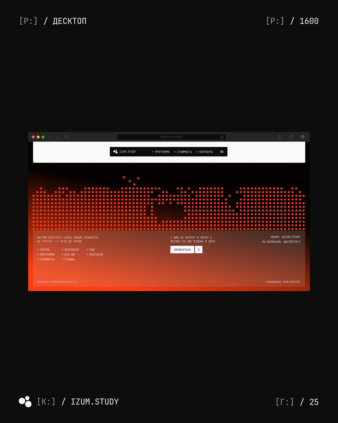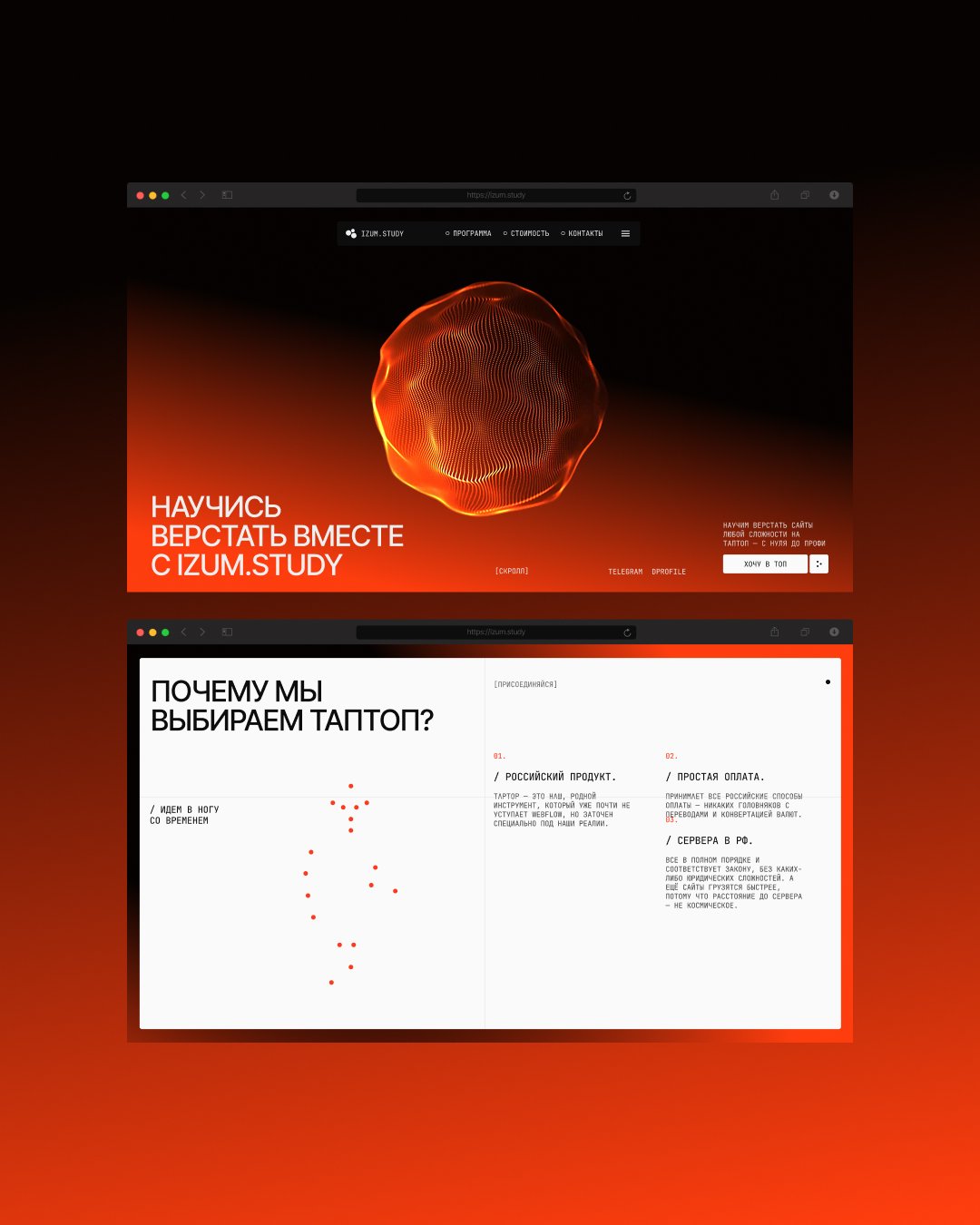 Этот проект был разработан для одного из направлений работы студии IZUM, образовательного проекта Izum.study, где мы делимся знаниями и опытом. Здесь ребята обучают вёрстке на TapTop, предоставляя нашим ученикам все необходимые инструменты для успешного старта в мире веб-разработки.