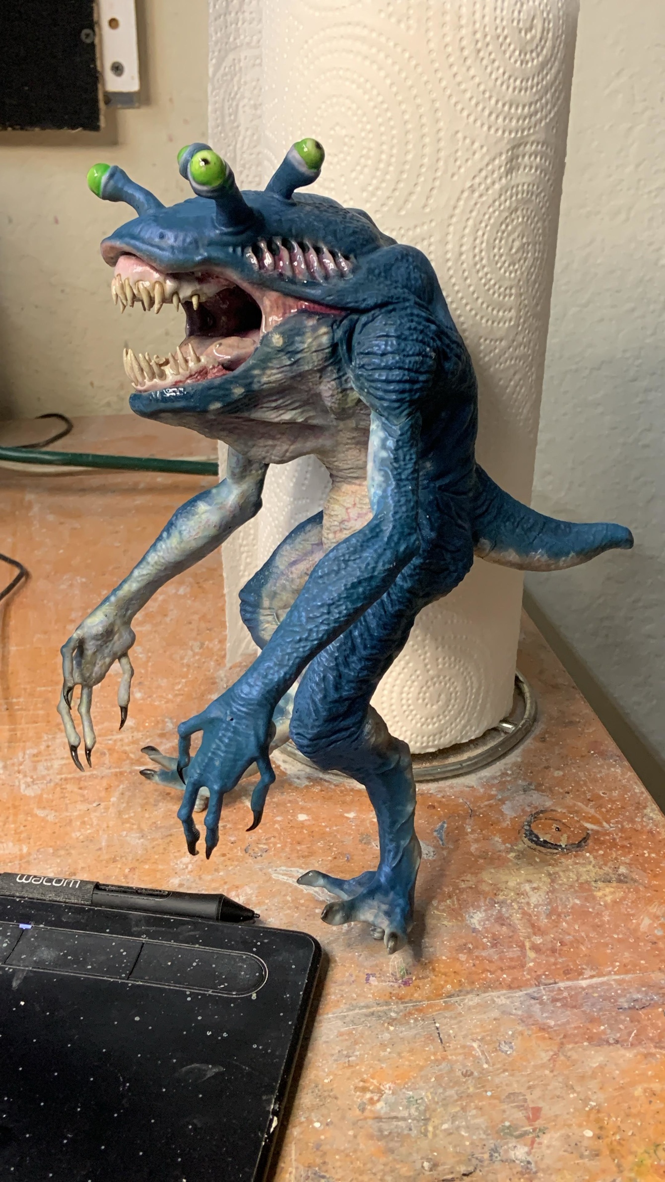 Я провёл фотосессию с самим собой и пригласил Джорду Шелла (дизайнера существ для фильмов Men in Black и Avatar), чтобы он разработал дизайн существа, сделал скульпт, 3D-сканирование, 3D-печать и покраску модели.