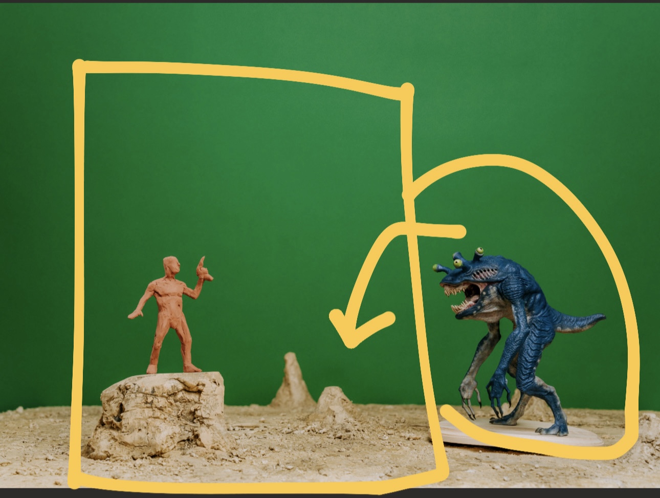 Это существо было сфотографировано в миниатюрной копии световой схемы, использованной на моей фотосессии. Затем оба изображения были объединены в одну композицию, где Рейд Саутен (концепт-художник для Blue Beetle и The Matrix Resurrections) проиллюстрировал финальную сцену на другой планете.