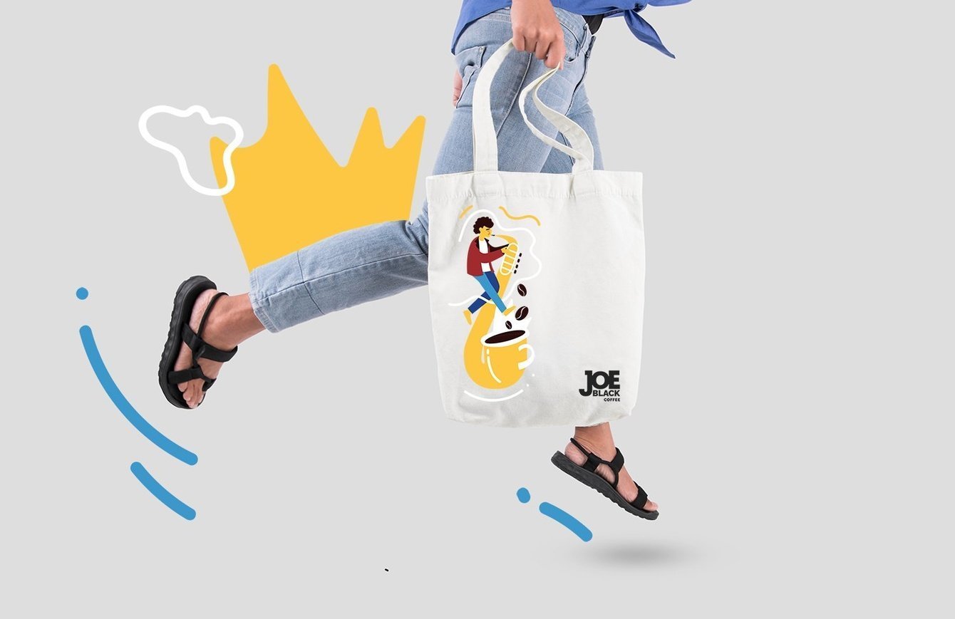 Из предложенных нами вариантов клиент выбрал следующее — Joe Black. В этом варианте мы обыграли тему черного, сделав его фамилией. Так у нас появился бренд-персонаж, Джо Блэк. А еще Joe — это сленговое американское название кофе.