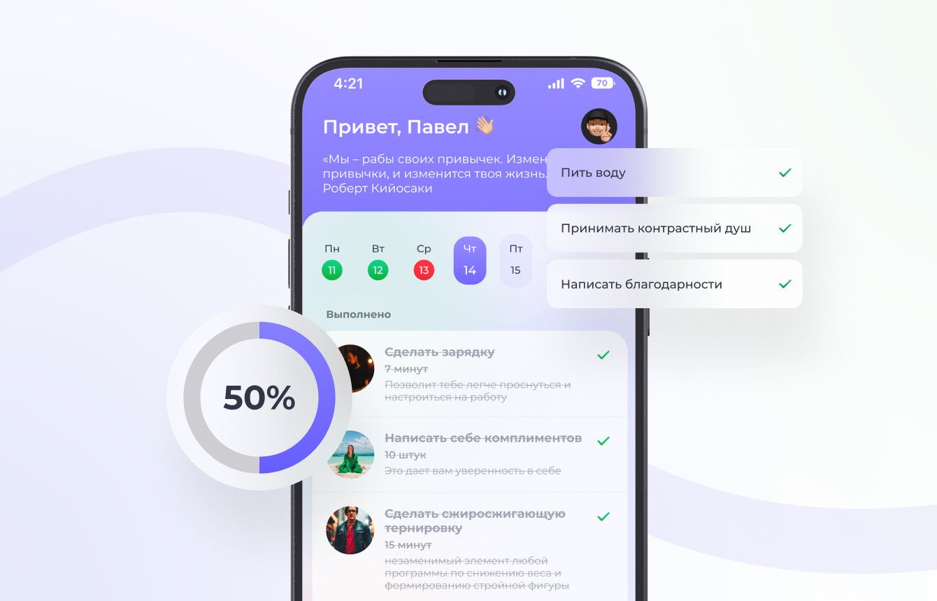 К тому же, пользователю “прыгать” между несколькими приложениями, чтобы обрести полезные привычки может быть не очень удобно.