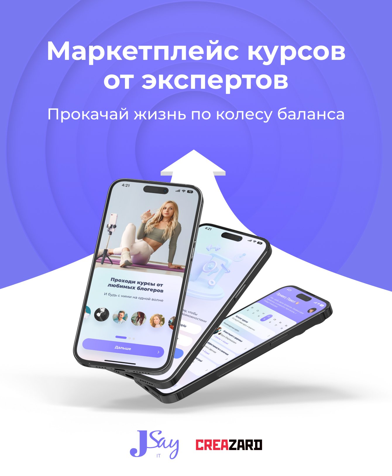 Мы предложили клиенту кардинально развернуть концепцию и привлекать “на свою сторону” экспертов, уже имеющих твердую аудиторию, получающих доход за свои курсы, но не имеющих средств на выпуск собственного мобильного приложения. Либо уже имеющих его, но желающих расширить свою аудиторию. Изначальную же идею разных приложений объединить в одно: JSay UP: Здоровье как хобби.