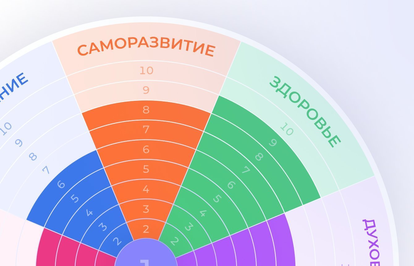 В основу приложения решили положить принцип достижения гармонии в жизни по 8 сферам Колеса баланса. Так как в компании мы делаем упор на разработку приложений по тематике красоты, здоровья и фитнеса, то в первой версии приложения прорабатываем функционал по сферам здоровья и саморазвития.