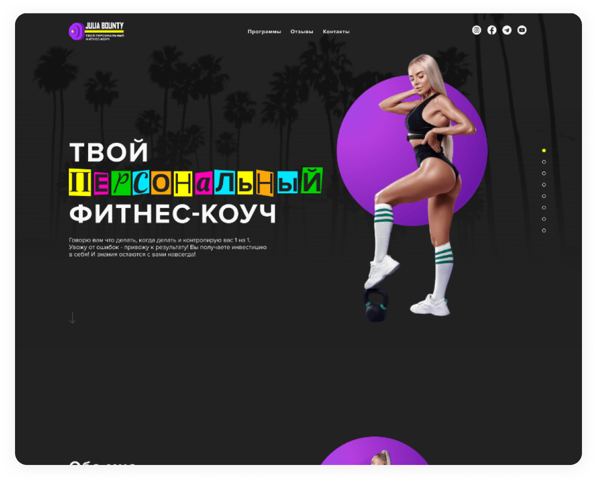 Фитнес-коуч и блогер (@juliia_bounty) обратилась за созданием адаптивной web-платформы с личным кабинетом для просмотра, ведения, контроля фитнес-уроков и подбора индивидуального питания.