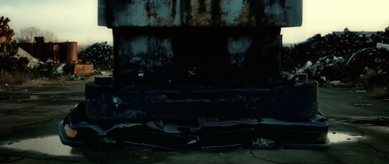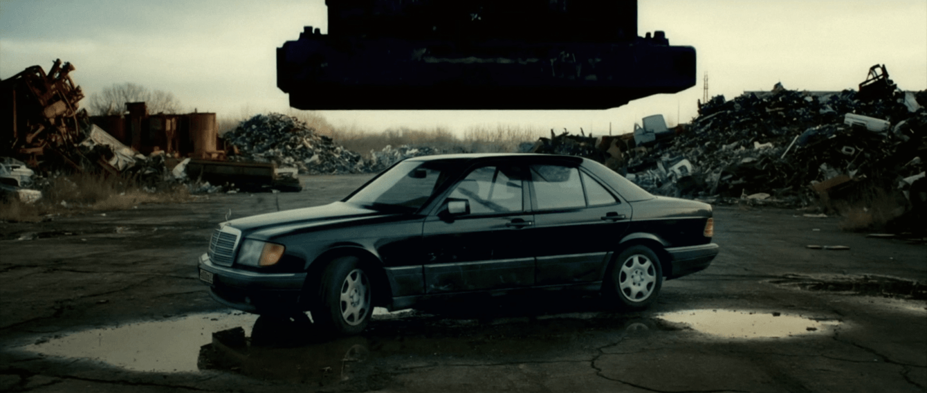 Чтобы передать ощущение конца криминальной эпохи 90-х, мы решили уничтожить один из его символов — легендарный Mercedes-Benz W140, он же «Кабан». Прощание должно было быть жёстким — под гидравлическим прессом и прицелом нескольких камер.