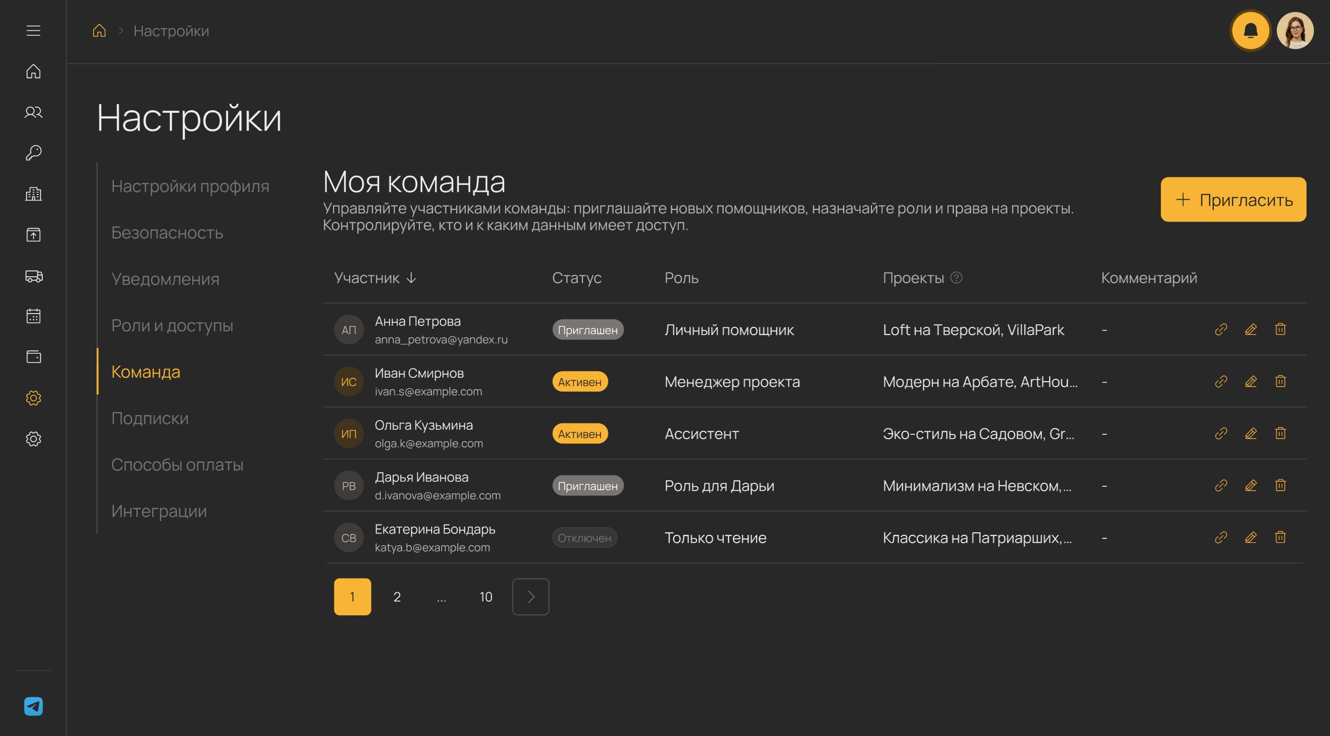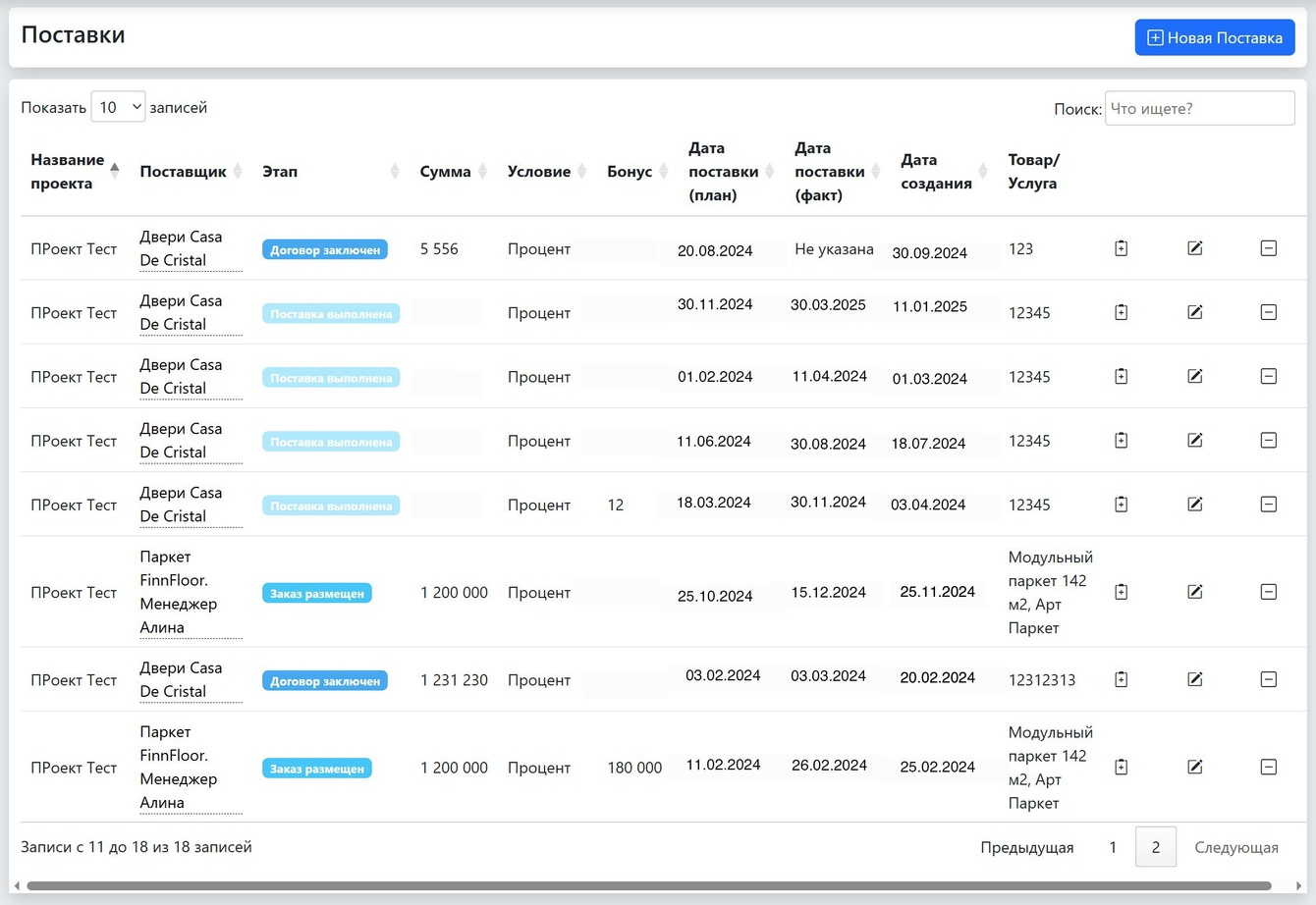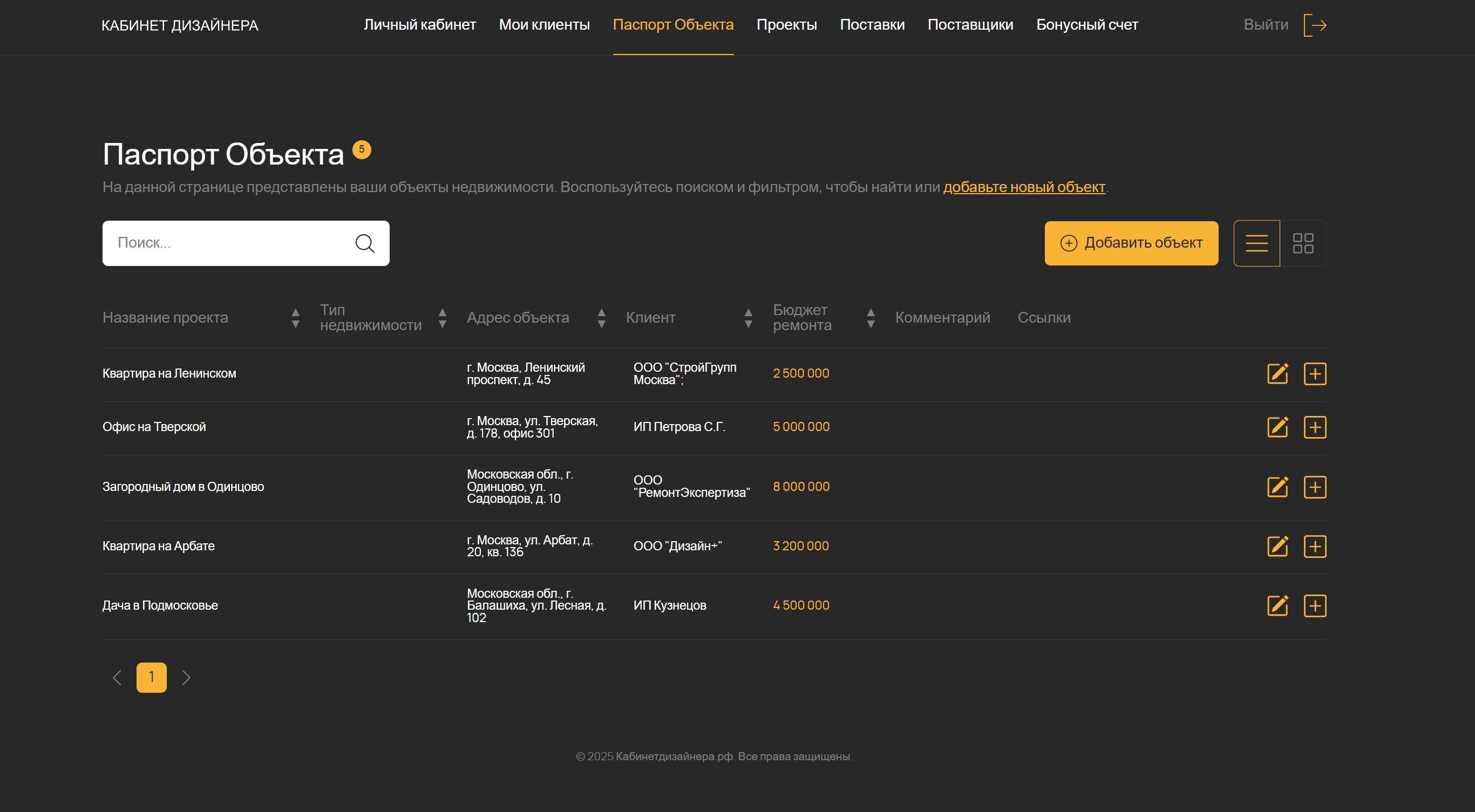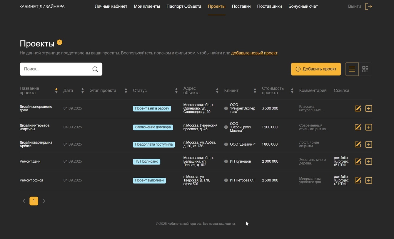 Для разделов Клиенты, Проекты, Поставщики сделали возможность выбора отображения данных - в виде карточек, канбан-доски, списка или таблицы. Кабинет из простого инструмента стал ресурсом, в котором все можно настроить под себя, и это вывело проект на новый уровень взаимодействия с пользователем.