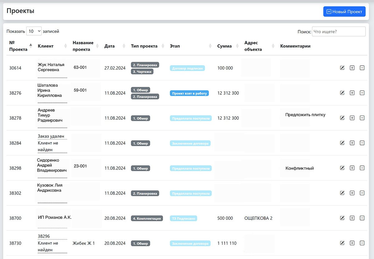 В Проекты добавили поиск и систему фильтров, чтобы легко можно было найти проект, даже если по нему велись работы несколько лет назад.