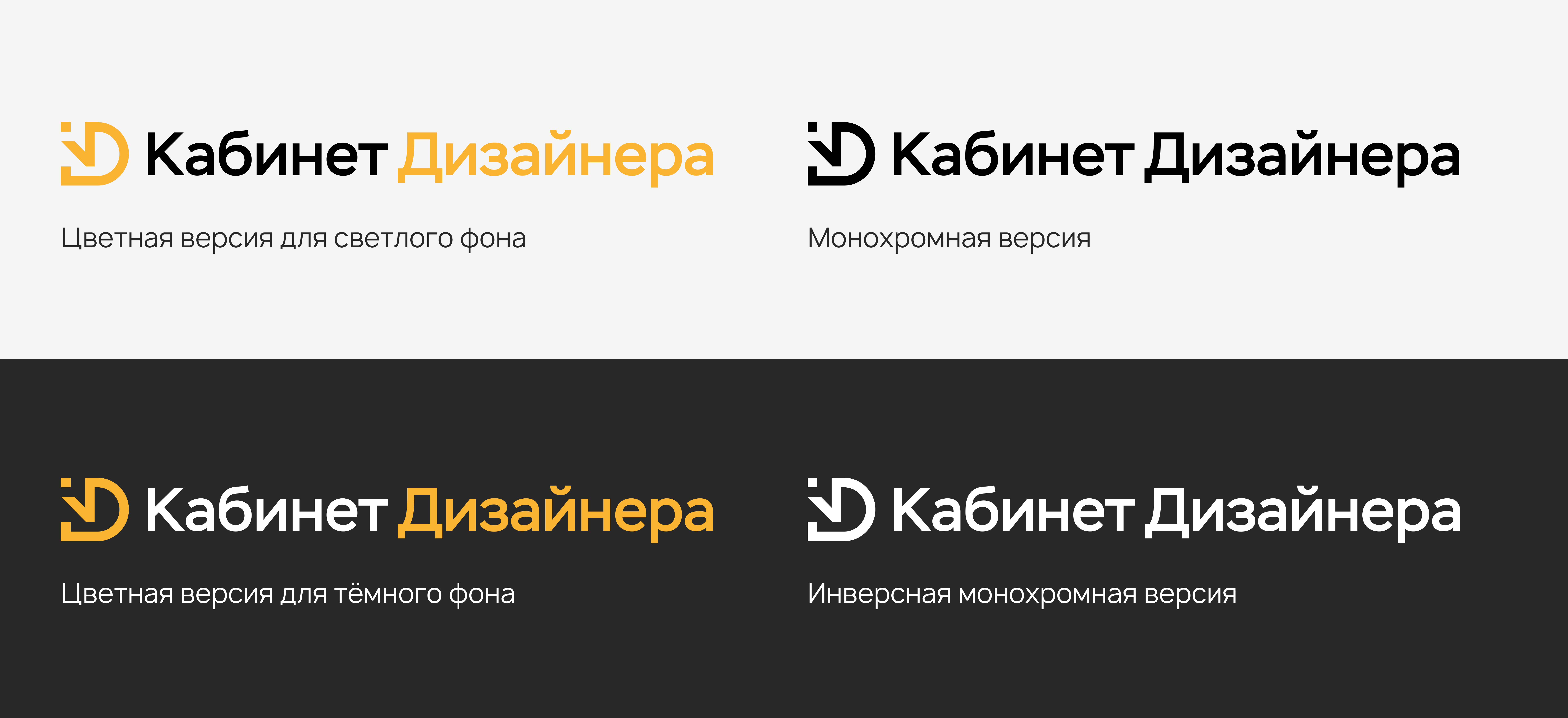 В процессе стало очевидно, что нужно разработать фирменный стиль для «Кабинета Дизайнера»: логотип и запоминающийся фирменный знак, которые стали бы узнаваемы в профессиональной среде и могли бы использоваться как визуальный якорь для гарантированной узнаваемости бренда.