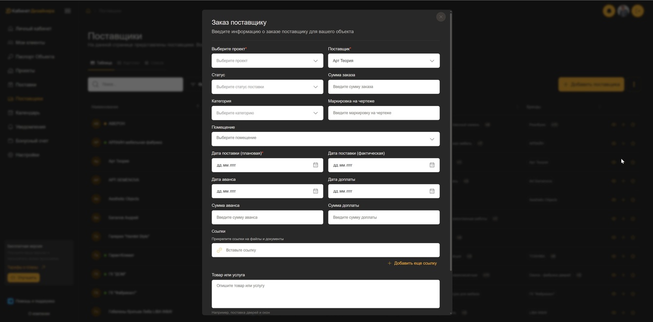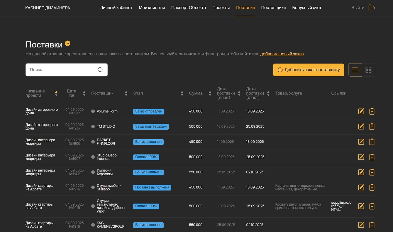 Клиент пришел к нам с идеей создания удобного инструмента для частных дизайнеров интерьера, дизайн-бюро, а также поставщиков и подрядчиков. Проект ранее пытались реализовать, но стало очевидно, что нужно переводить его на более высокий уровень — технический, визуальный и функциональный.