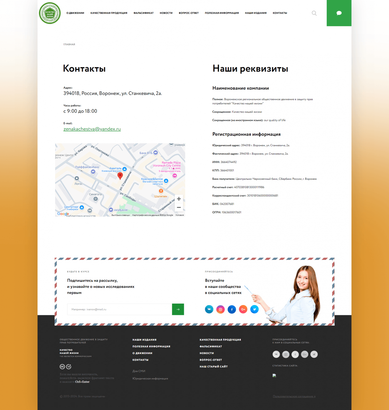 Клиент: Воронежское региональное общественное движение в защиту прав потребителей «Качество нашей жизни»