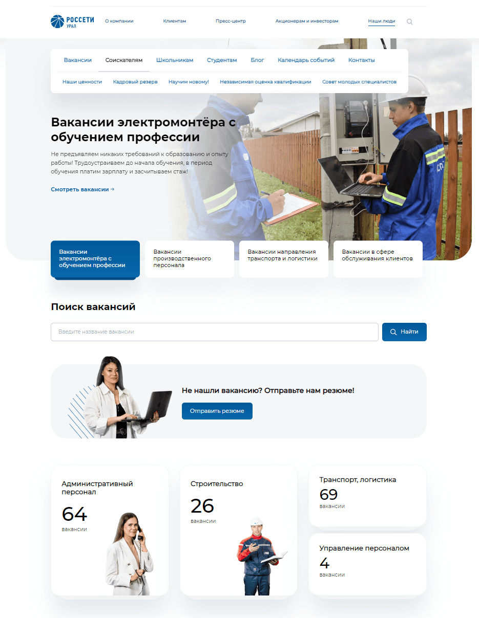 Благодаря вам за 10 месяцев работы от идеи до запуска проекта (обсуждение, ТЗ, торги, договор, программирование, тестирование, обучение администраторов) была полностью сформулирована заново логика НR-бренда компании «Россети Урал» и в результате был создан развитой инструмент охвата профильного информационного спроса. Многие ценные идеи появлялись и гибко апробировались на ходу исходя из реальности, а не из подсмотренных на стороне референсов. Рождалась структура, дизайн, тексты, новая логика и стандарты взаимодействий.