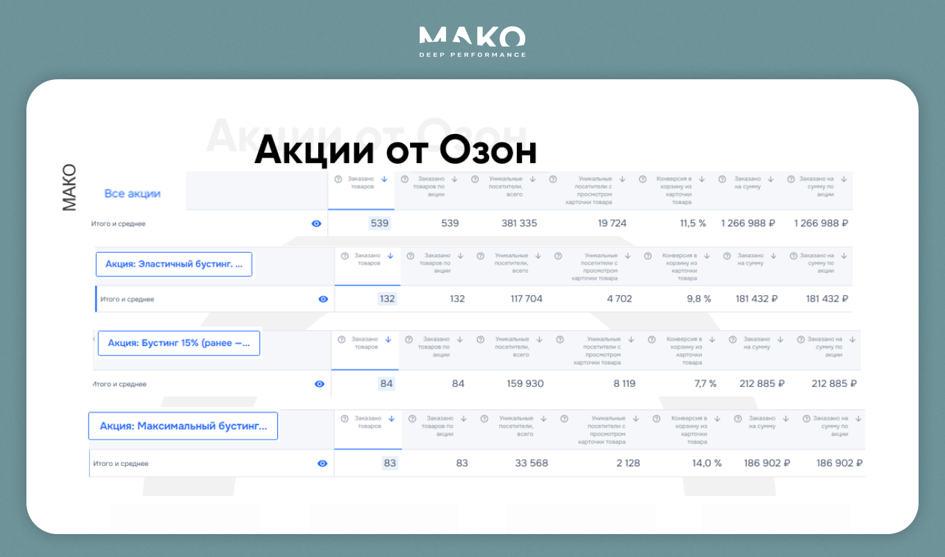 2) Алгоритмы Ozon снижали цену товаров в акции.