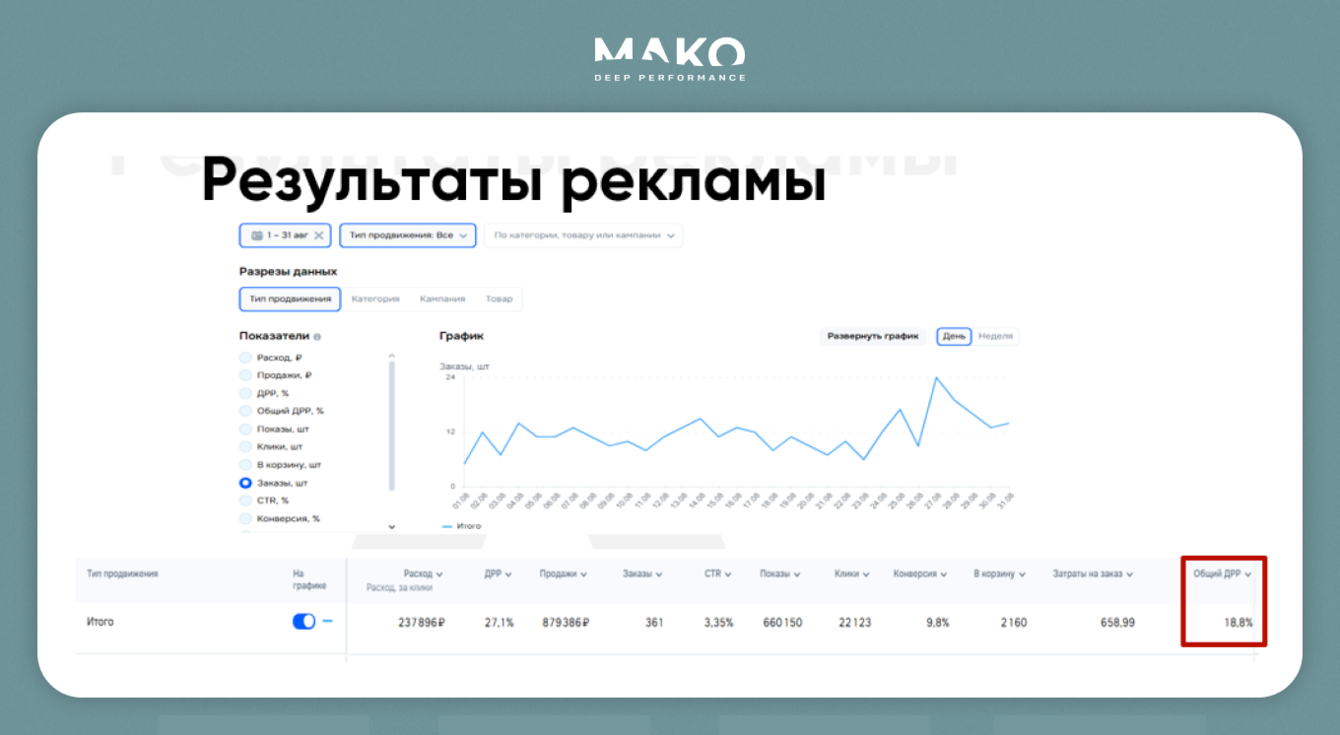 Селлер вышел на прибыль и держит ДРР в рамках 17-19%.