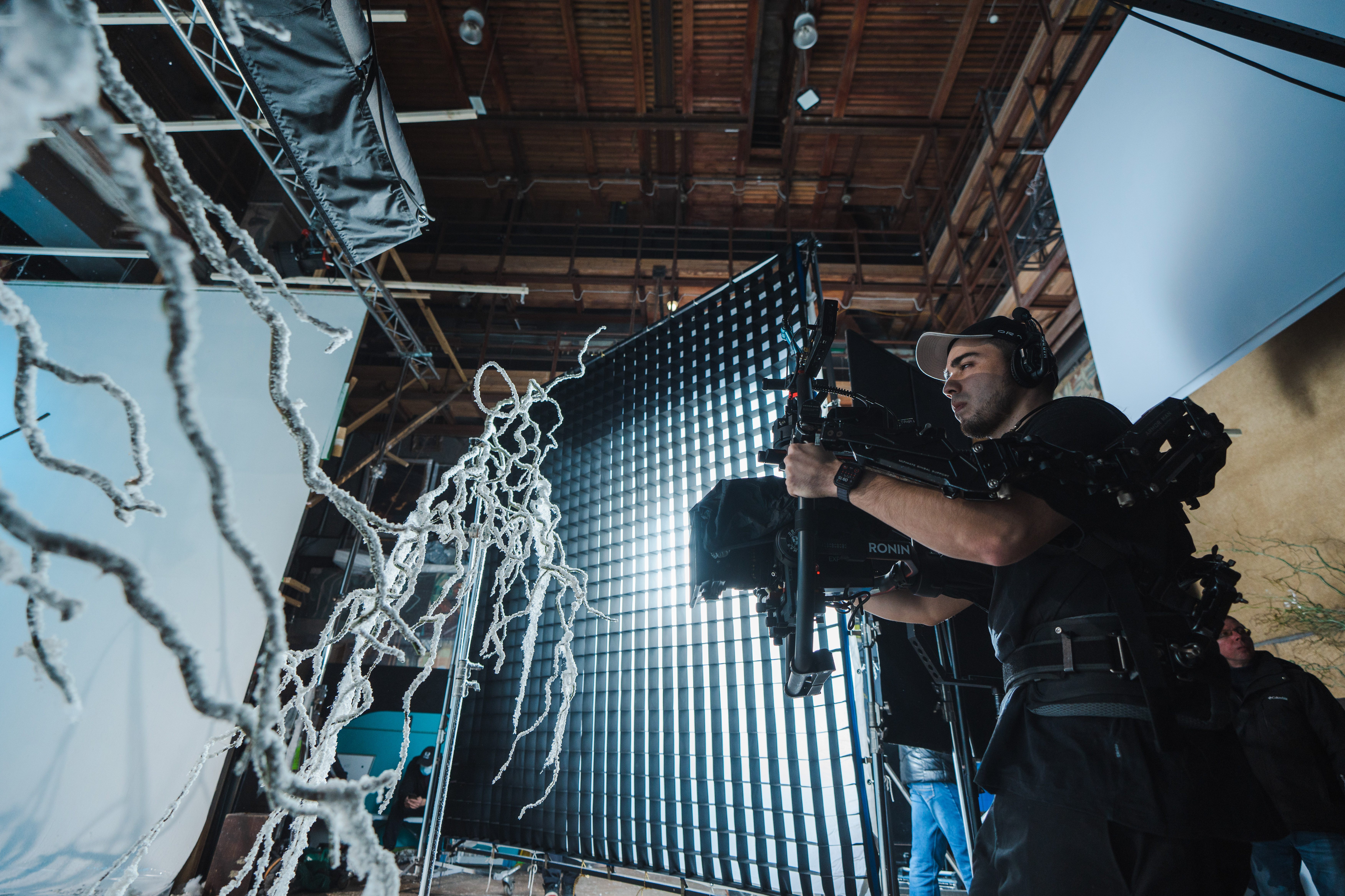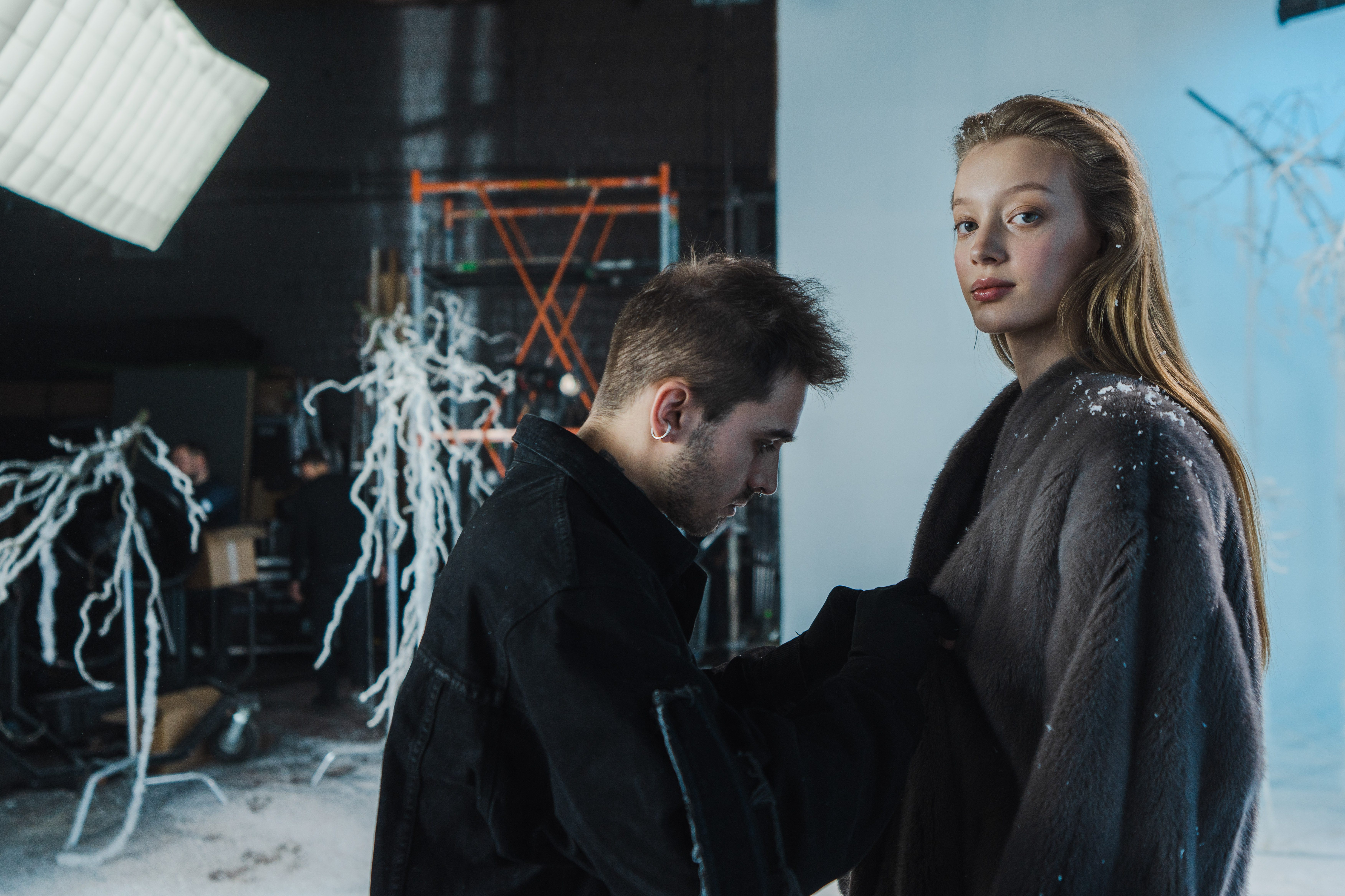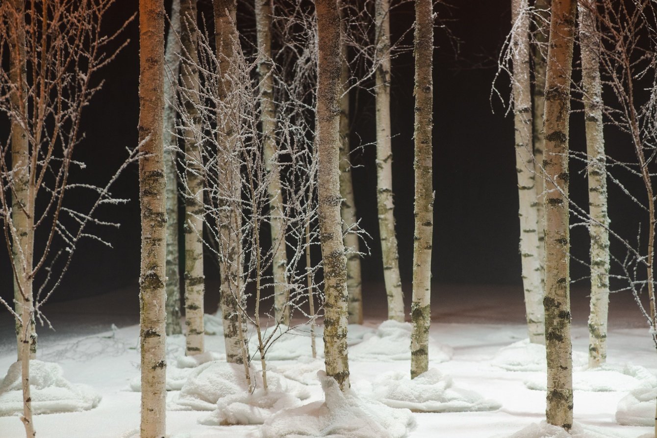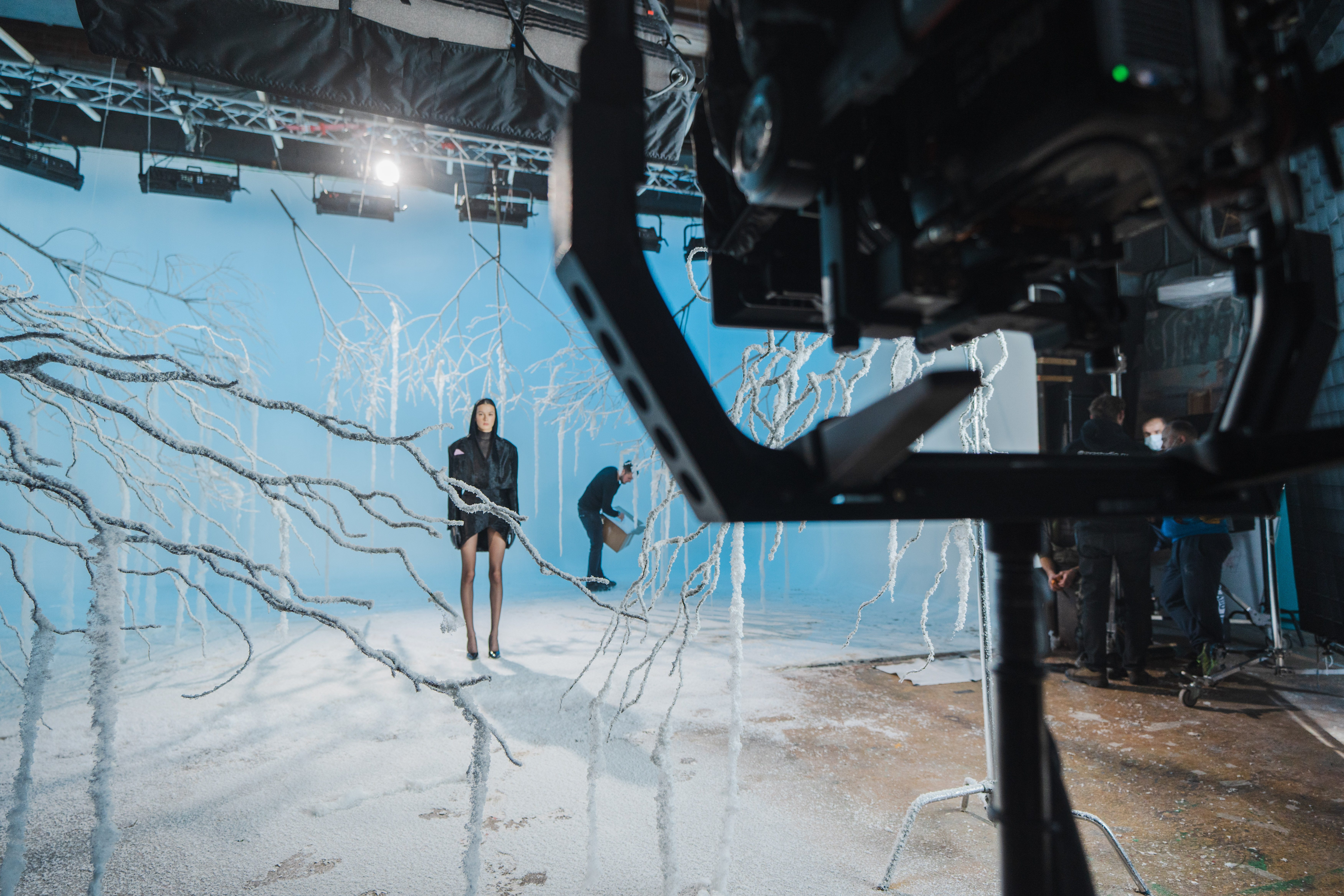 Березы как настоящие? Они и есть настоящие, мы смогли перенести их на площадку. А снег и изморозь на них — творение наших художников: они приехали на съемки задолго до начала и создали невероятный эффект зимнего леса. Чтобы успеть смонтировать все декорации, мы выбрали павильон с двумя циклорамами – черной и белой. Пока снимали на одной — другая была в руках наших творческих монтажников. В итоге получилось создать 5 разных зон!