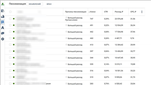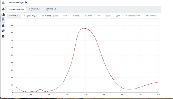 Настроили коэффициенты оптимизации и пессимизации. Фразы, которые приносят «пустые», не ведущие к продажам клики, или превышающие целевую стоимость – пессимизируются в автоматическом режиме. Если фраза работает в рамках целевых показателей, то ставки на нее повышаются также автоматически.