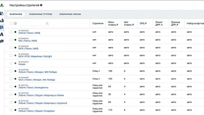 Учитывая всю полученную информацию агентство разработало пятнадцать индивидуальных стратегий рекламных кампаний. Одно из них — размещение на заданных позициях поиска.