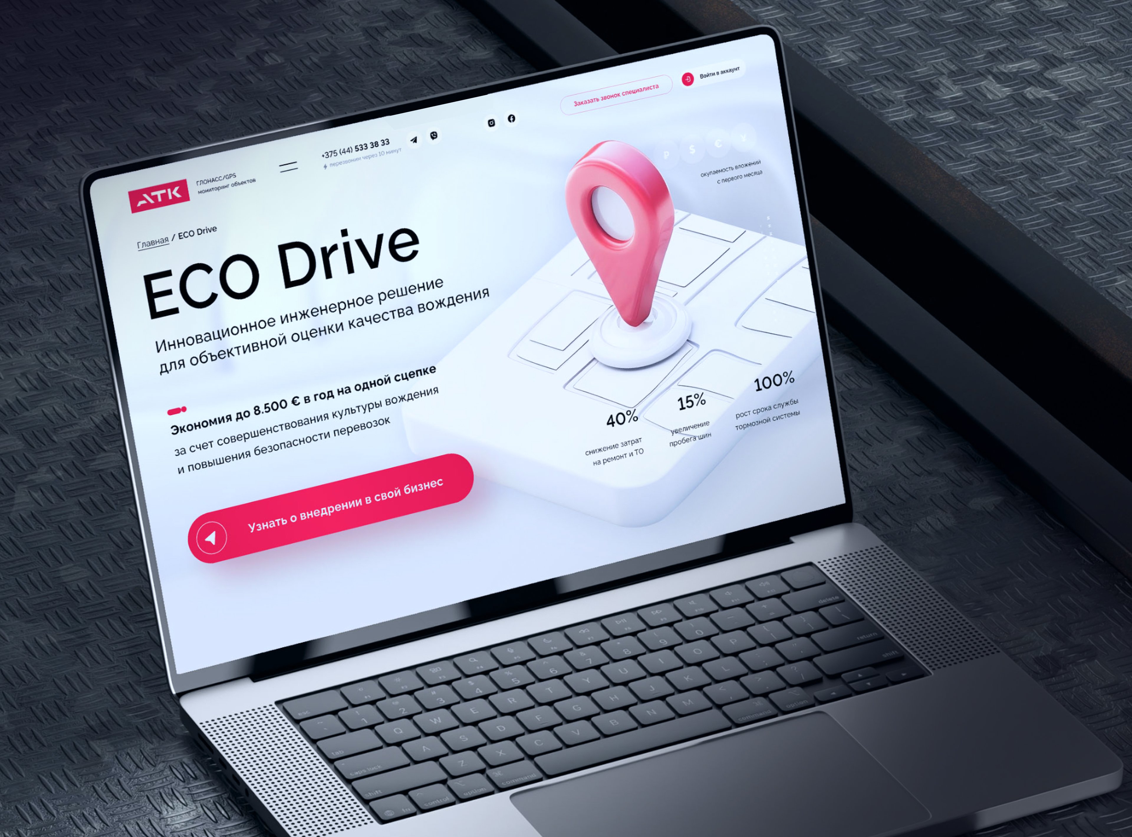 Визуально ECO Drive получил собственный маршрут внутри сайта. Это помогло сформировать восприятие ECO Drive как самостоятельного инструмента управления эффективностью автопарка.