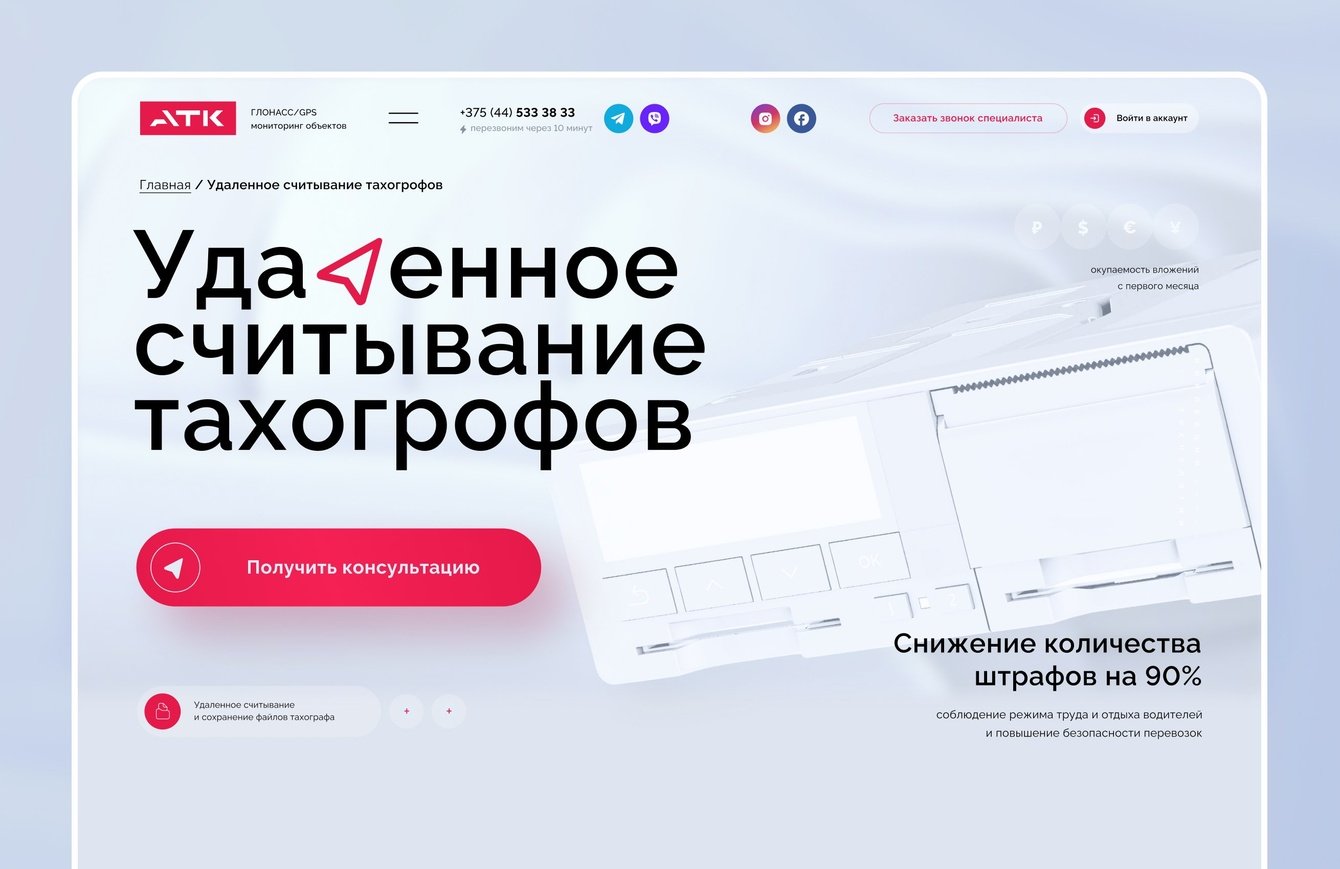 Такой маршрут позволяет пользователю быстро понять ценность продукта и увидеть его влияние на операционные показатели автопарка. В структуре страниц акцент сделали на цифрах, сценариях использования и объяснении механики работы системы.