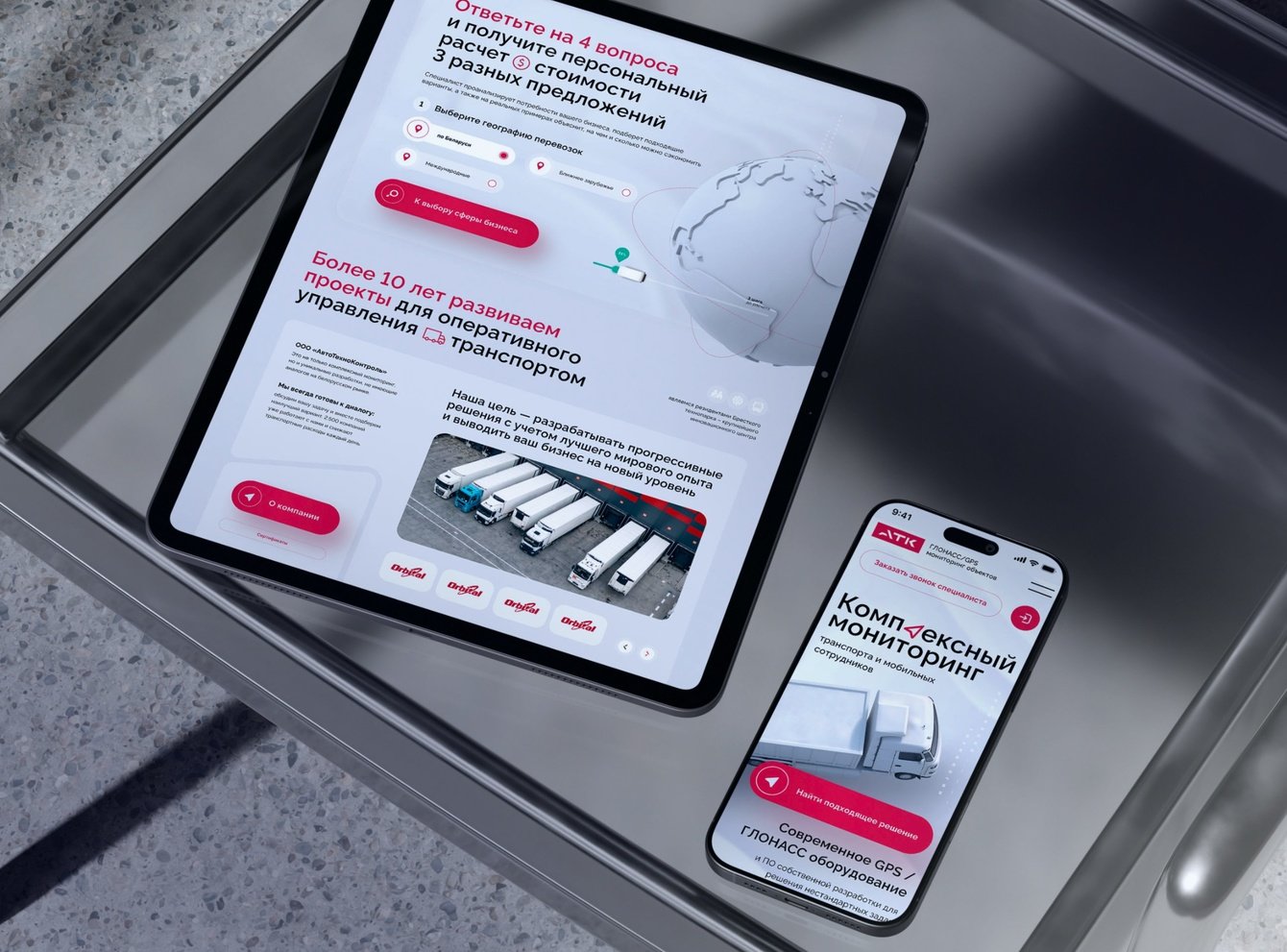 Обновленная структура помогает быстрее донести ценность решений для разных сегментов аудитории: логистических компаний, строительных организаций и корпоративных автопарков. Пользователь быстрее понимает, какие задачи решает система и какие показатели она помогает контролировать.