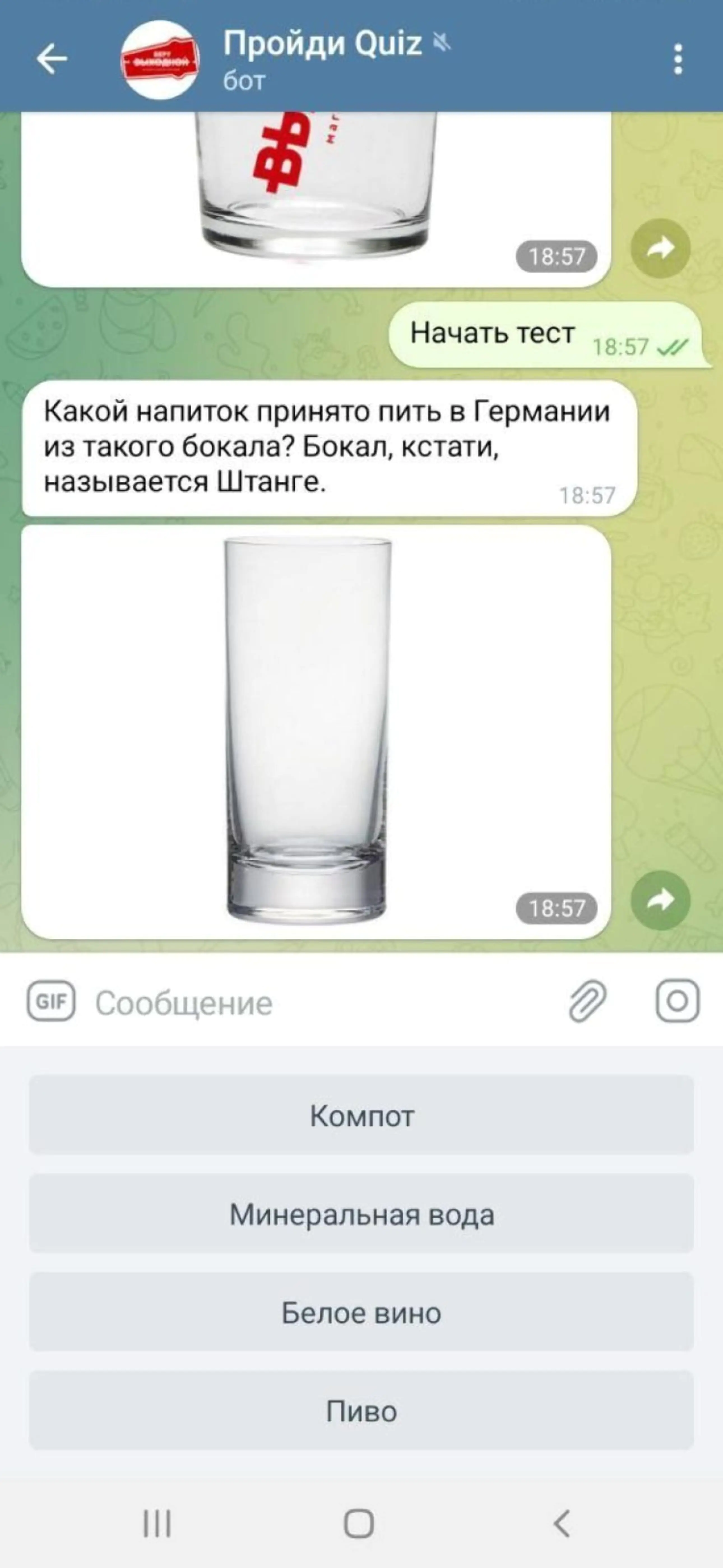 Еще одним аргументом в пользу Telegram стало то, что однажды мы уже использовали Telegram-бота — для привлечения покупателей. Поскольку для продвижения магазинов пива нельзя использовать таргетированную рекламу, мы рекламировали не сам магазин, а Telegram-бота с квизом. На создание чат-бота у нас ушло около часа — просто остались в офисе на обеденный перерыв. В нем клиент отвечал на простые вопросы и получал промокод. Эта механика позволила нам убедиться в эффективности инструмента: конверсия из подписчика чат-бота в покупку в офлайн-магазине достигла 7%, чек был выше среднего.