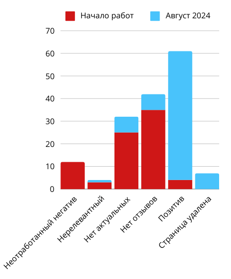 - Площадки с неотработанным негативом, нейтральной тональностью и без отзывов полностью исчезли из топа выдачи Яндекса и Google.