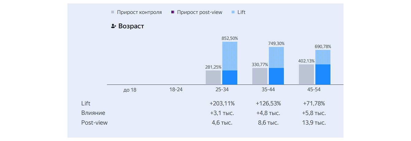 4. Прирост визитов не только среди посетителей целевого возраста, но и среди более молодой аудитории.