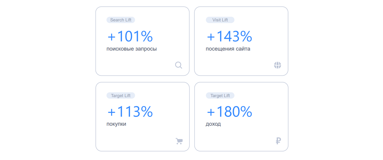 3. Прирост поисковых запросов, визитов и целевых действий по сравнению с группой пользователей, которые не видели рекламу.