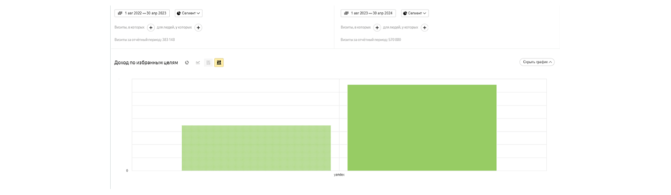 Кроме того, мы активно использовали Яндекс Метрику для глубокой аналитики товаров. Это дало возможность понять, как различные возрастные группы из определенных регионов реагируют на конкретные модели сумок.