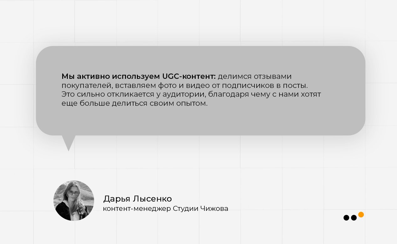 Продающий контент (этап формирования желания купить по воронке AARRR) мы выстраивали с опорой на продукт и самих пользователей. Например, публиковали клиентские видеообзоры или отзывы и рассказывали о товарах, которые в них задействованы.