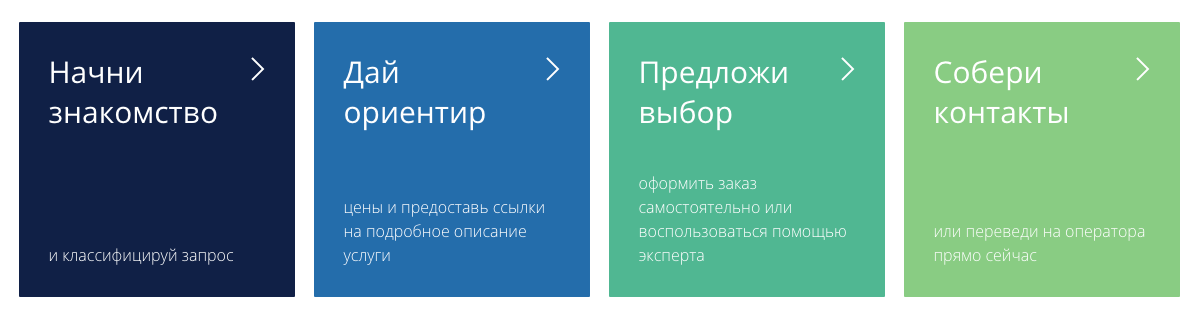 Большинство возможных ответов со стороны покупателя мы предусмотрели с помощью ключевых слов и кнопок-подсказок: человеку не нужно ничего набирать руками, достаточно ткнуть в подходящий его случаю вариант.
