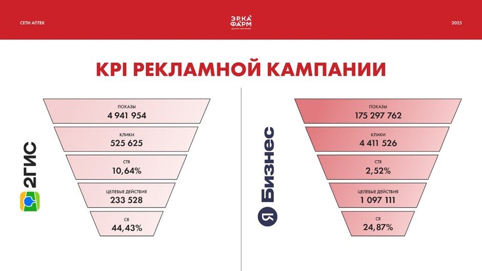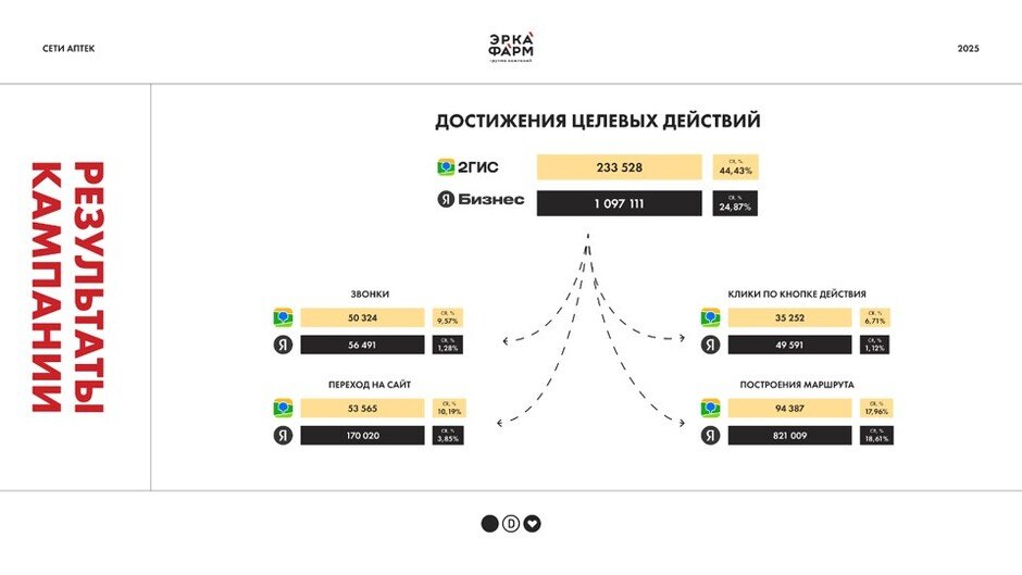 Цифры показывают, что затраты на привлечение пользователей через 2GIS были весьма экономичными. Средняя стоимость визита в аптеку составила всего 3 рубля, что демонстрирует высокую эффективность наших рекламных усилий.
