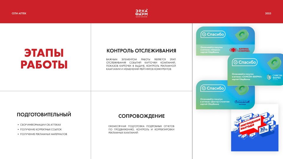 Оптимизация карточек аптек в Яндекс.Картах и 2GIS была ключевым элементом нашей стратегии. Мы улучшили описания, добавили качественные фотографии и регулярно обновляли информацию о товарах и услугах. Это не только улучшило пользовательский опыт, но и повысило рейтинг аптек в поисковой выдаче.