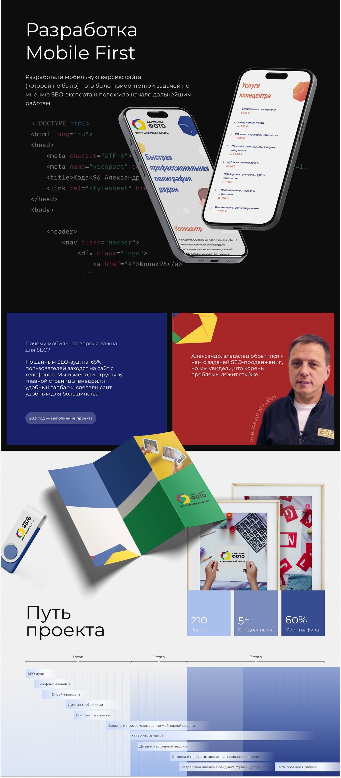 «Александр Фото» — типография, расположенная в спальном районе Екатеринбурга. Владелец, Александр, хотел улучшить показатели SEO, но анализ показал более глубокую проблему: слабое позиционирование, неочевидная ценность для клиентов и низкая конверсия. Вместо простого увеличения трафика необходимо было разработать стратегию, которая не только привлечет посетителей, но и превратит их в клиентов.