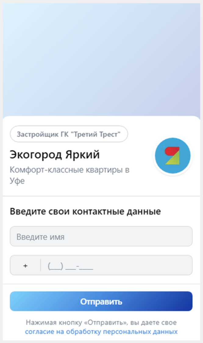 Для лид-форм из пользовательских данных запрашивали имя и телефон. Экспериментировали с обязательными вопросами и обложками, но это не повышало эффективность. Обязательные вопросы снижали количество входящих заявок, при этом конверсия из первичного лида в квалифицированный оставалась на прежнем уровне.