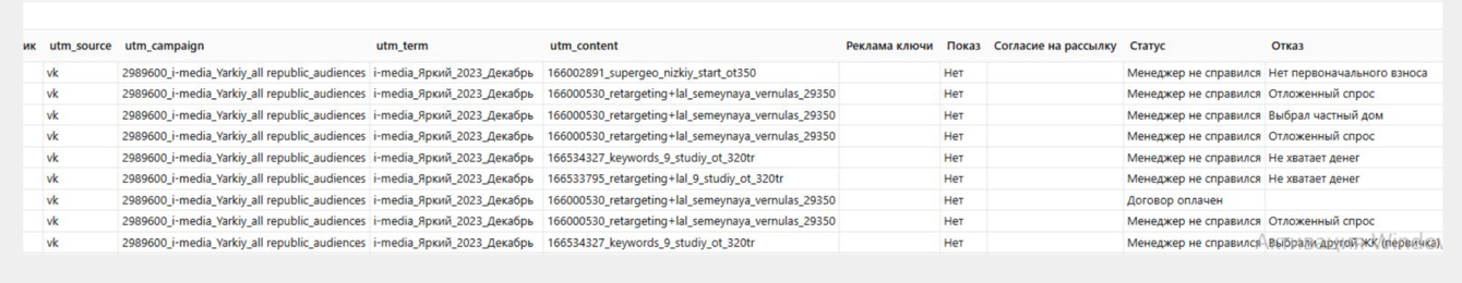 – Каждую неделю смотрели стоимость входящего лида из VK, конверсию в квалифицированный лид и отслеживали путь клиента до сделки.