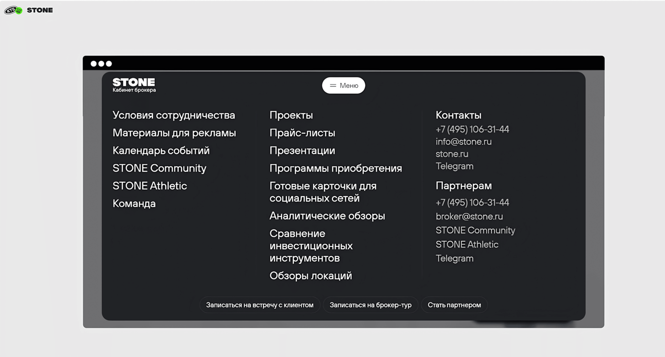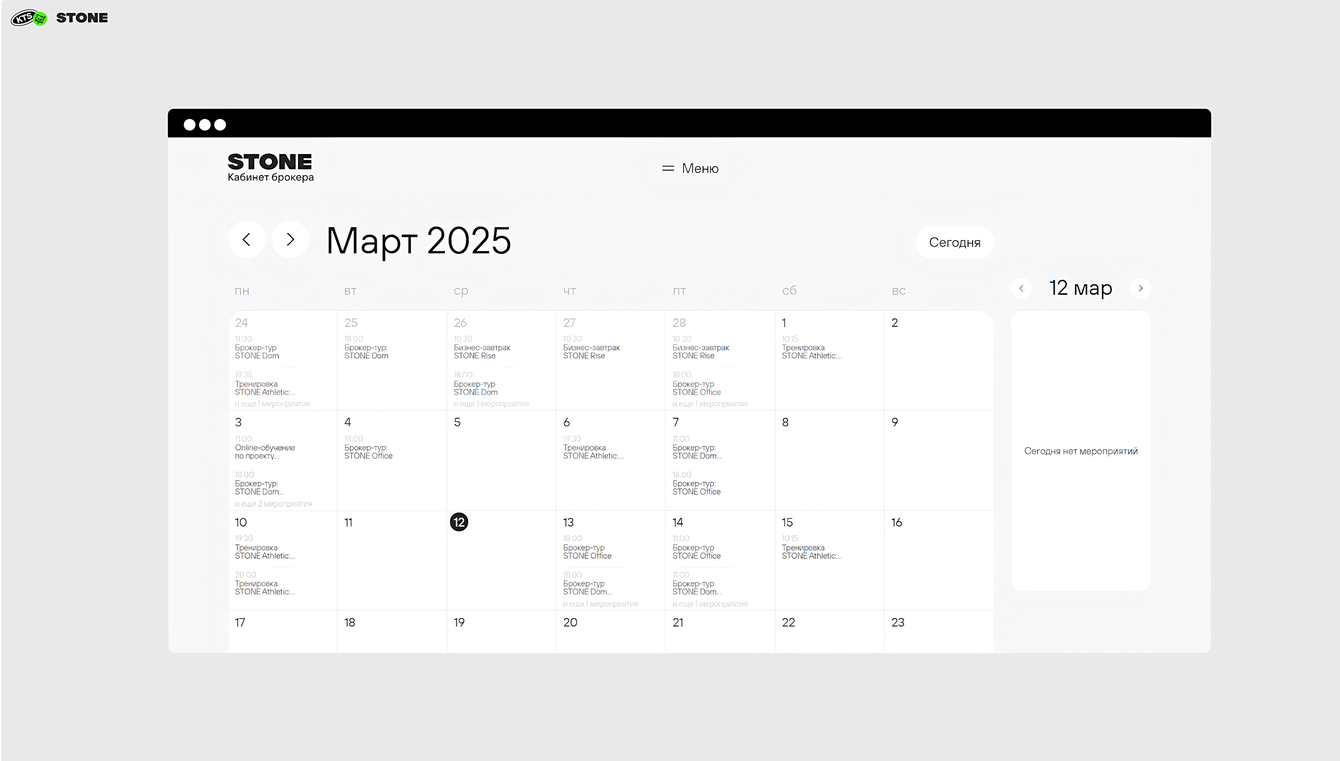 Вместе со STONE мы поставили перед собой цель — создать эффективный инструмент для работы брокеров, который будет соответствовать уровню компании. Нужно было упростить запись на мероприятия и собрать всю информацию для агентов недвижимости в одном месте. Важно было запустить кабинет брокера до Нового года, то есть за 2 месяца. При этом качество продукта должно было оставаться на высшем уровне.