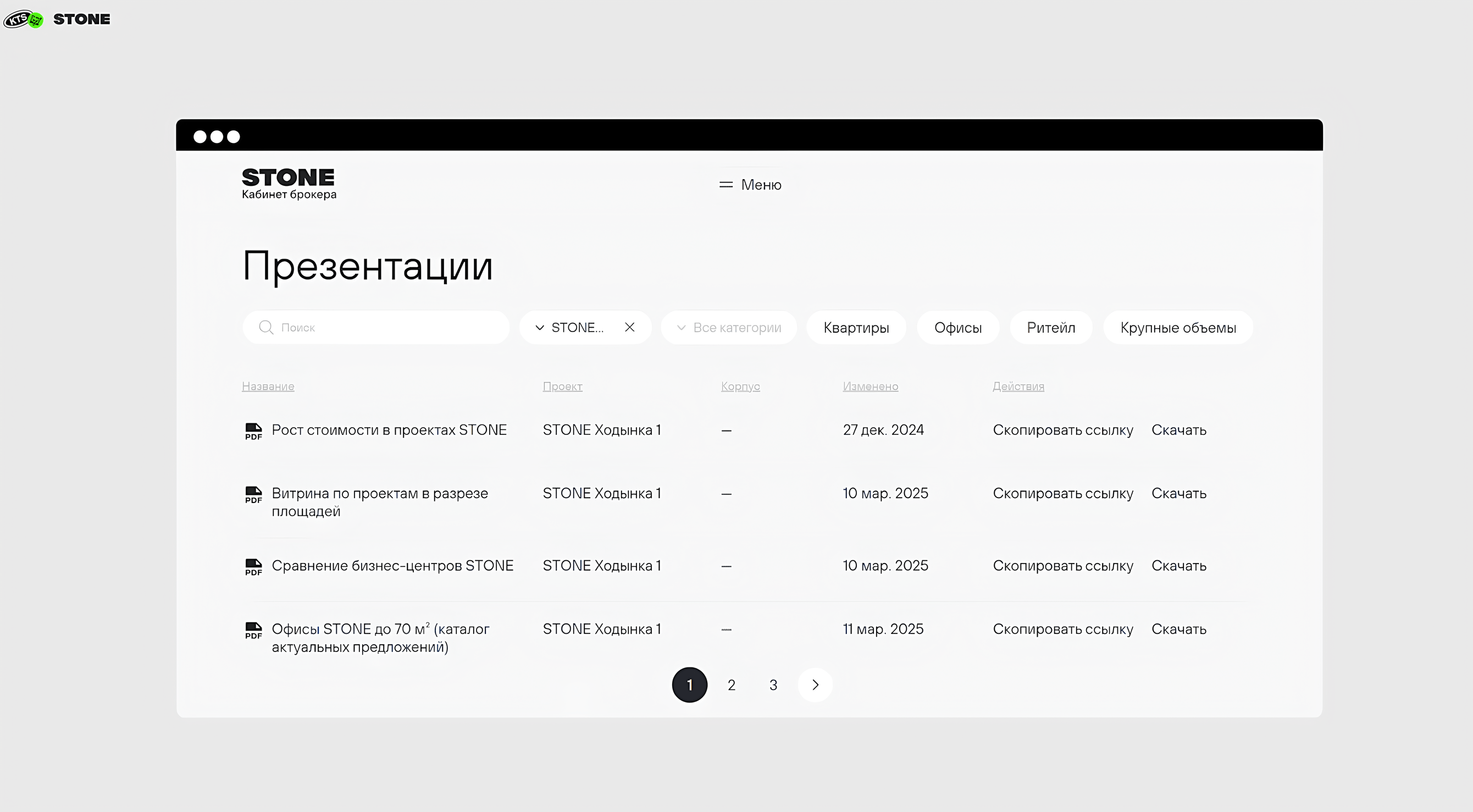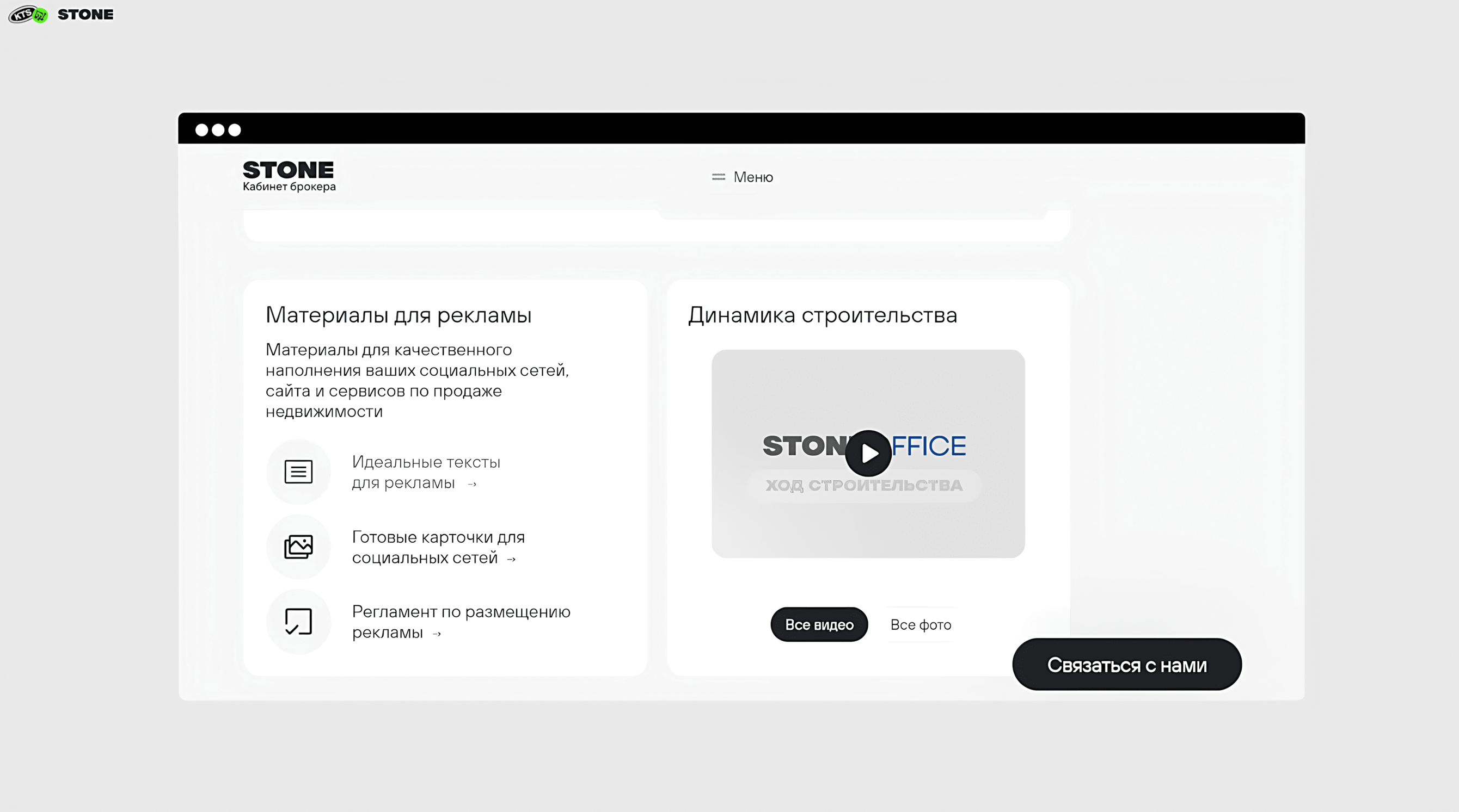 STONE заранее готовит для своих партнеров материалы для качественного наполнения соцсетей — готовые карточки и видеоролики, в том числе сформированные тексты по проектам, что помогает брокерам в поддержании интереса клиентов, покупателей.