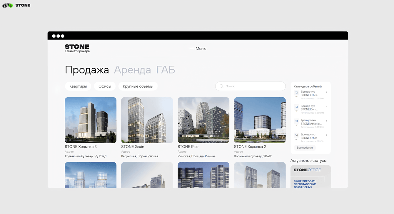 Вместе со STONE мы поставили перед собой цель — создать эффективный инструмент для работы брокеров, который будет соответствовать уровню компании. Нужно было упростить запись на мероприятия и собрать всю информацию для агентов недвижимости в одном месте. Важно было запустить кабинет брокера до Нового года, то есть за 2 месяца. При этом качество продукта должно было оставаться на высшем уровне.