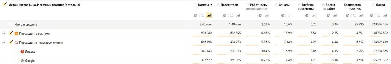 Запустили просто поисковые РК, пусть и хорошо сегментированные, но без внятной аналитики по целям. Т.е. да, трафик шел, но было трудно понять какой хороший, а какой плохой из-за кучи целей и непонятности по какой нужна оптимизация.