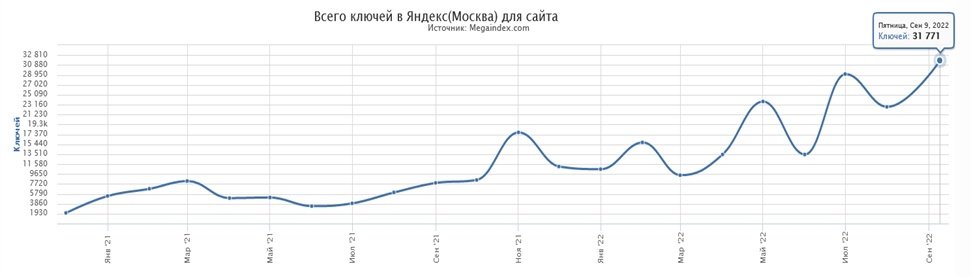 Для получения уникальных индивидуальных ссылок (которых никогда не будет у конкурентов) была построена PBN сеть на аукционных дроп доменах. Так же, 100% тематические дроп домены были использованы для подклейки (более 15 штук). Гугл отреагировал стабильным, конверсионным и растущим трафиком. В связи с некоторыми событиями, трафик с гугла стал трендом 2022 года и мы в очередной раз убедились что все сделали правильно.