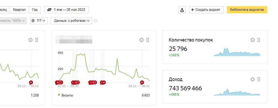 Данные по Яндекс Метрике с 01.01.2022 по 30.11.2022