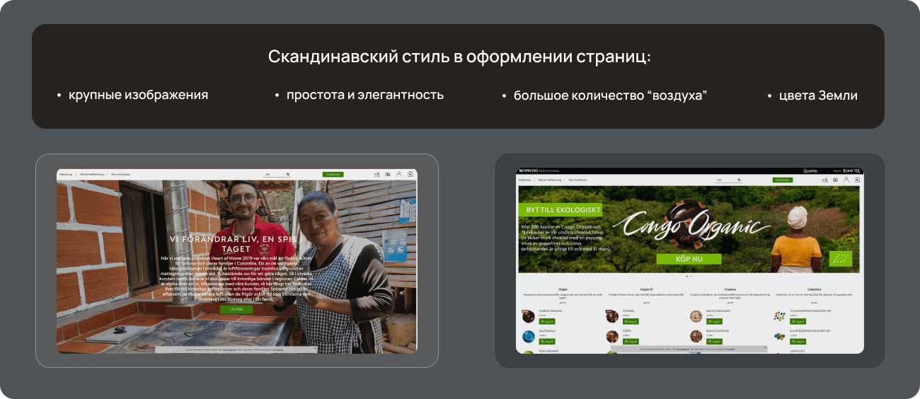 Мы решали задачи поэтапно. И начали с погружения в философию Lyreco и Nespresso Professional. Согласно ей, выращивание и приготовление кофе – целое искусство, а сам напиток – драйвер позитивных изменений. Мы поняли, что нам предстоит создавать сайт с территорией хорошего настроения, и это очень вдохновляло. Тем более, что мы и сами большие поклонники кофе.