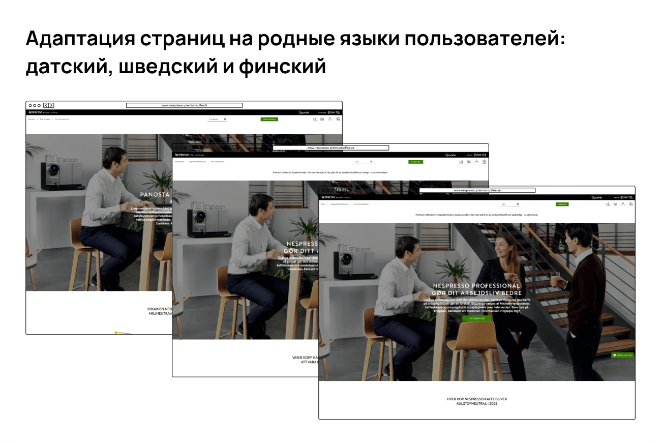 Мы создали адаптированные витрины товаров: на датском, шведском и финском языках:
