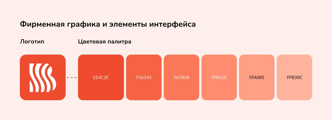 Готового брендбука не было. Только логотип, который мы сохранили в неизменном виде и сделали его цвет основным в интерфейсе. Дополнительные оттенки подобрали так, чтобы визуально обеспечить консистентность палитры интерфейса.